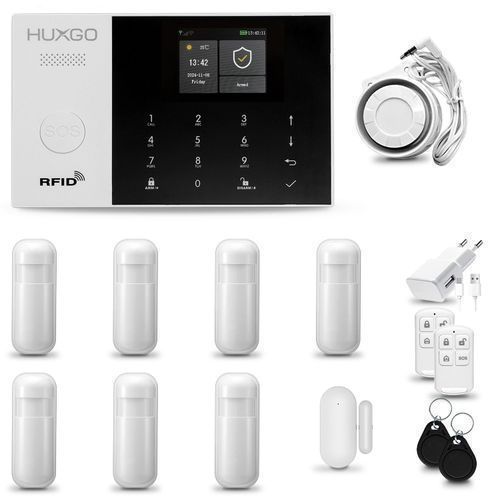 HUXGO HXA005 Alarmanlage Haus WiFi + GSM 4G LTE mit Sirene, 7x Bewegungsmelder, Tuya Smart
