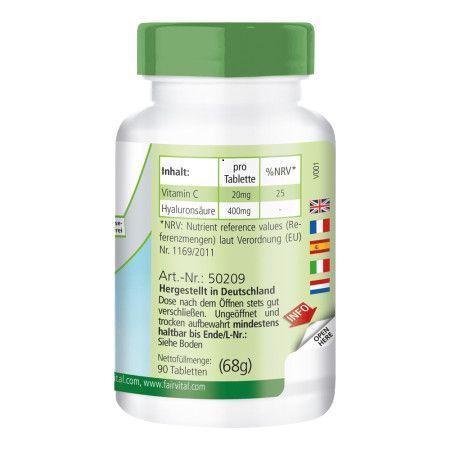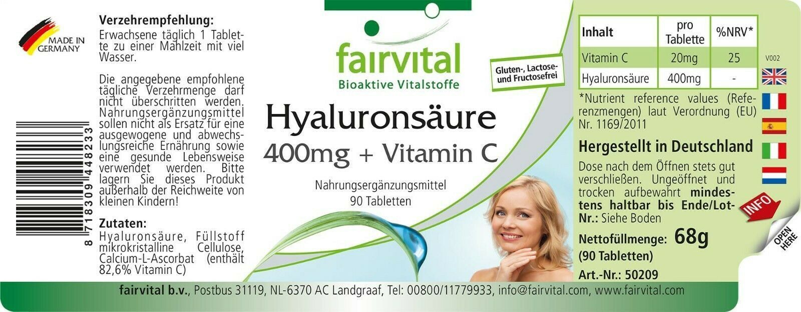fairvital Hyaluronsäure 400mg + Vitamin C - 90 Tabletten - fairvital