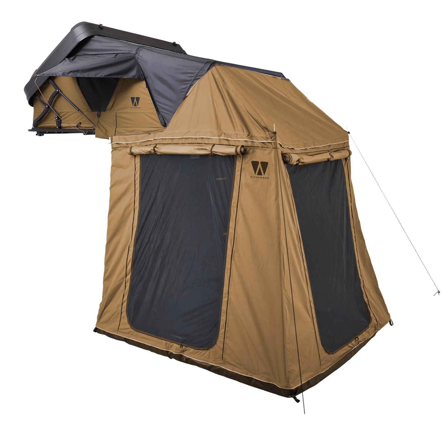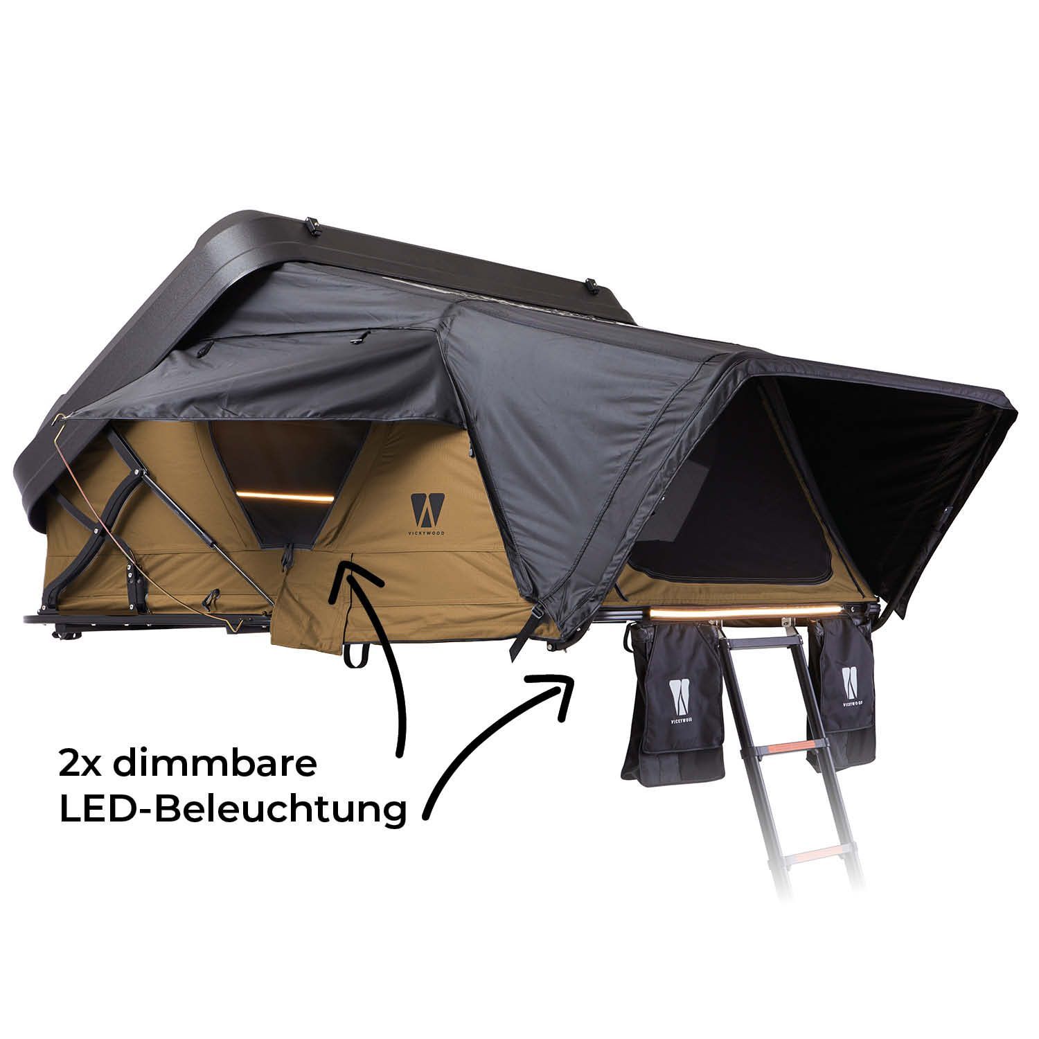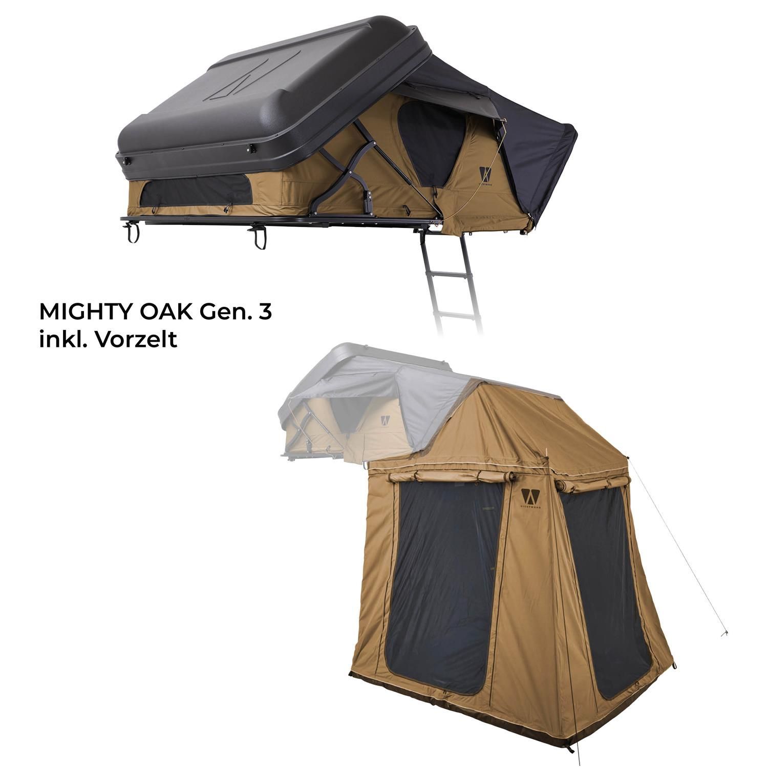 Hybrid-Dachzelt MIGHTY OAK 160 goldbraun Gen.3 + Vorzelt hoch