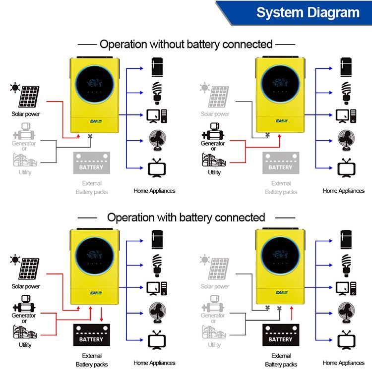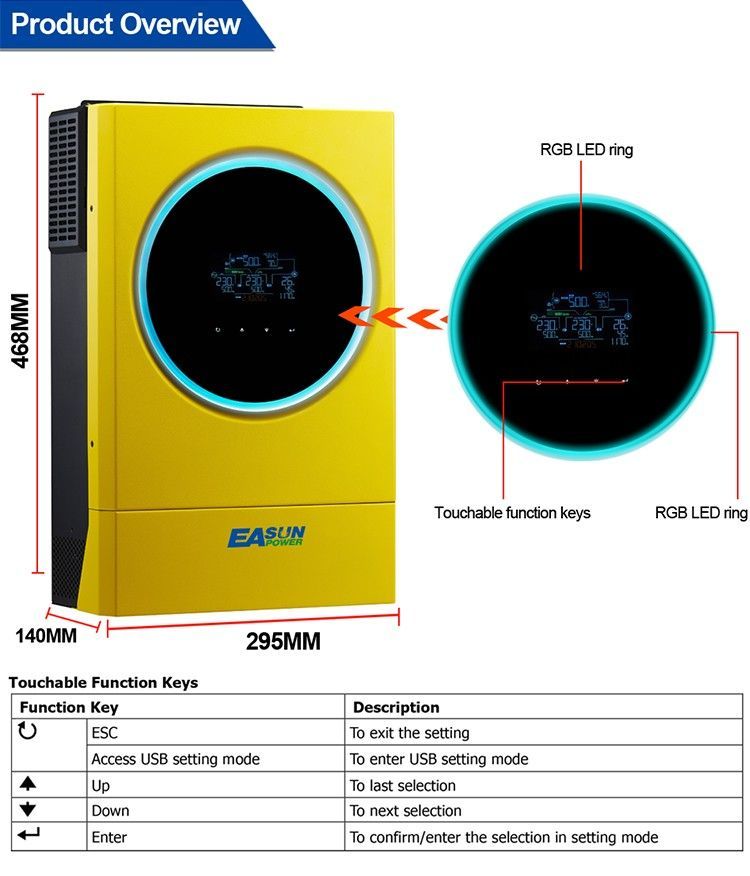 Hybrid Solar Wechselrichter 5.6KW, 48V, 120A, Parallel Fähig, WiFi, Reine Sinuswelle