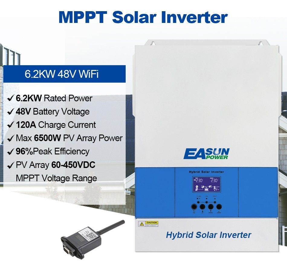 Hybrid Solar Wechselrichter 6.2KW, 48V, MPPT 450V, 120A, WiFi, Reine Sinuswelle