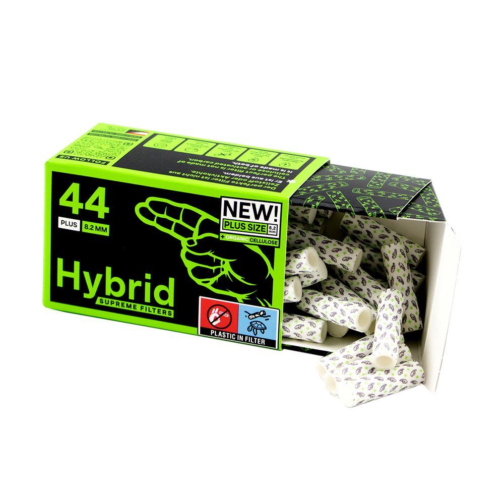 8 x Hybrid Supreme Aktivkohlefilter Plus Size 44er Schachtel 8,2mm Diese Plus-Size Aktivkohlefilter mit 8,2 mm Durchmesser bieten ein besonders sauberes und stabiles Raucherlebnis. Die Kombination aus natürlichem Zellstoff und Aktivkohle reduziert effektiv Schadstoffe, ohne die Wirkung zu beeinträch