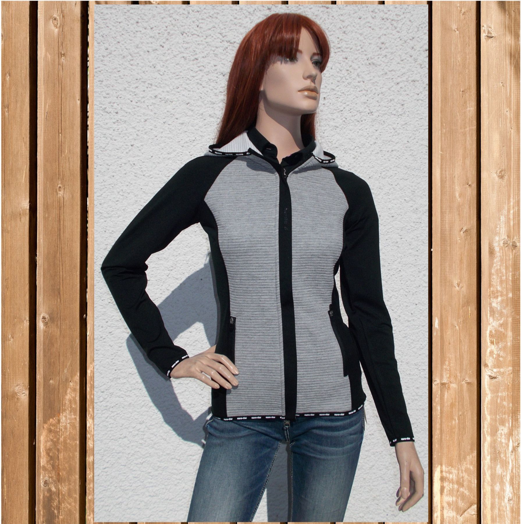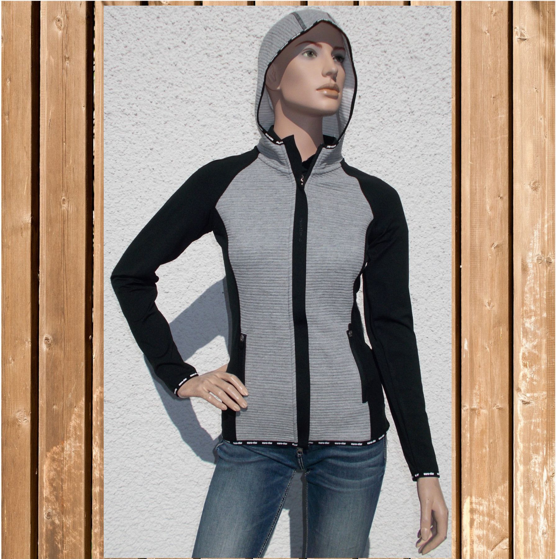 Hybridjacke Bente mit Kapuze, Euro Star Sweater, leichte Sportjacke, meteorite