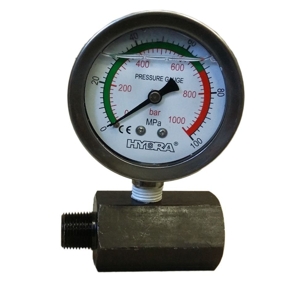 Hydraulik Manometer Glycerin Edelstahl 800 Bar mit Stand 63 mm