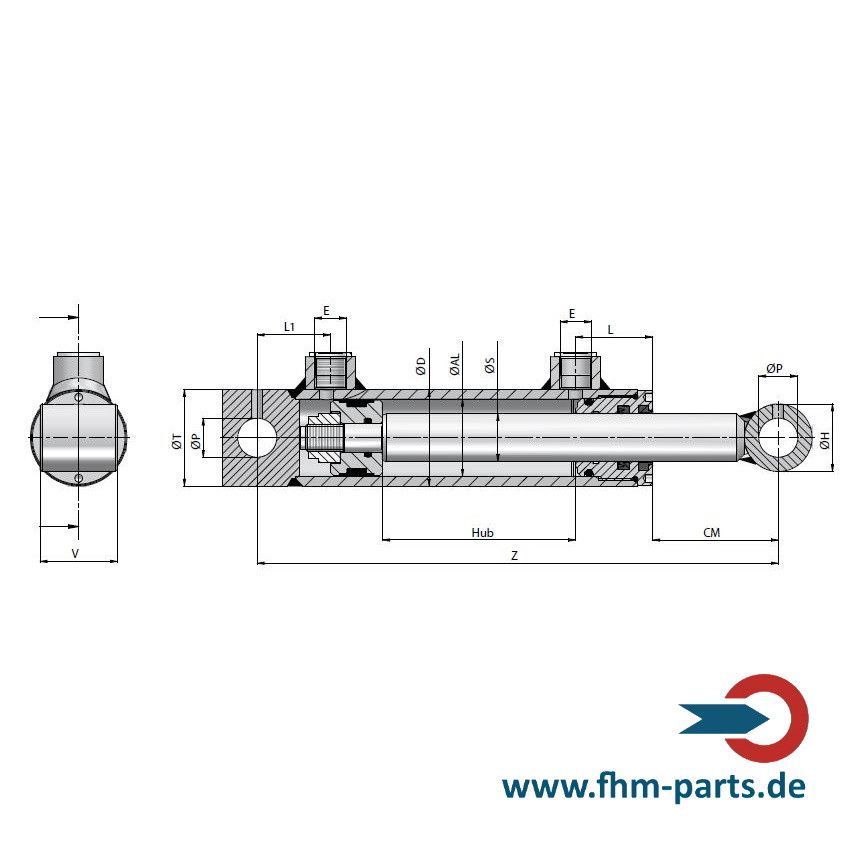 Hydraulikzylinder doppelwirkend mit Befestigung Buchse Auge Größe u. Hub wählbar