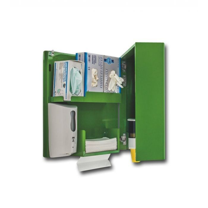 Ordnung in der Praxis durch diese Hygieneeinheit mit Spender Sorgfältiges Hygienemanagement als integraler Bestandteil des betrieblichen Ablaufs in der Praxis.