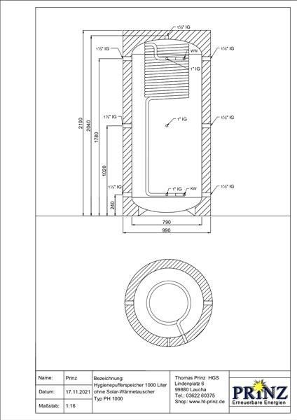 Hygienespeicher 1000 Liter mit Isolierung / ohne,1 oder 2 Solarwärmetauscher