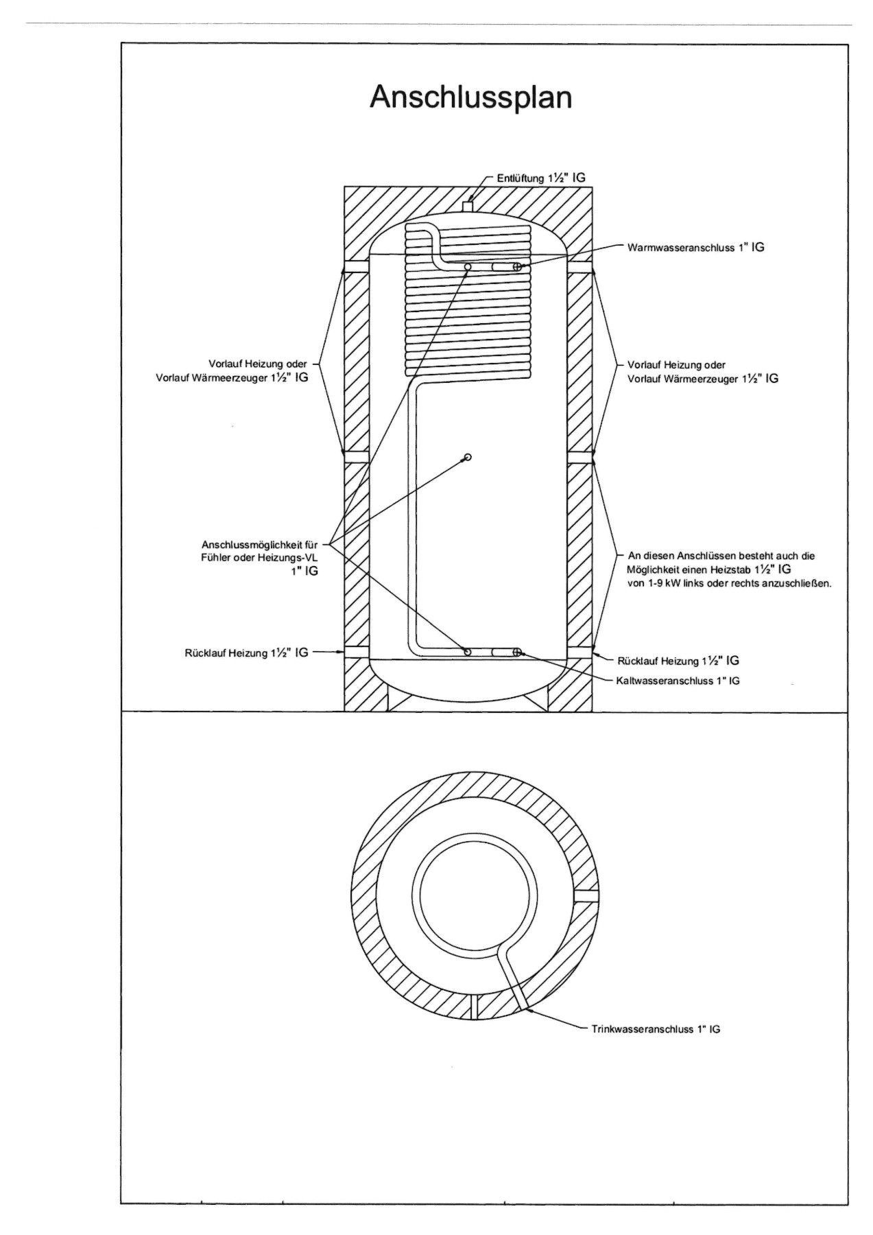 Hygienespeicher 500 Liter schmal mit Isolierung / ohne,1 oder 2 Solarwärmetauscher