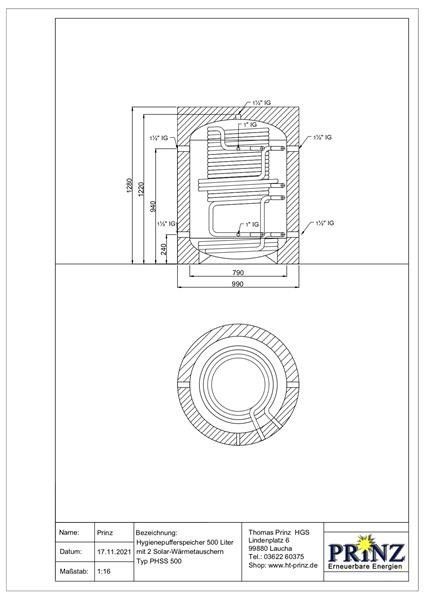 Hygienespeicher 600 Liter mit 2 Wärmetauschern und Isolierung Typ PHSS 600