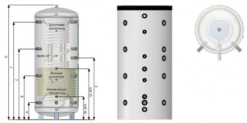 Hygienespeicher KH-S 500 Liter 1 Wärmetauscher Pufferspeicher Trinkwasserspeiche