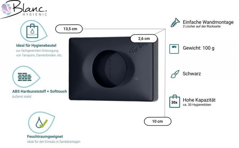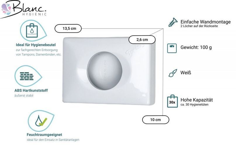 Hygienetütenspender FIX, für Damenhygienebeutel/-tüten, Wandmontage