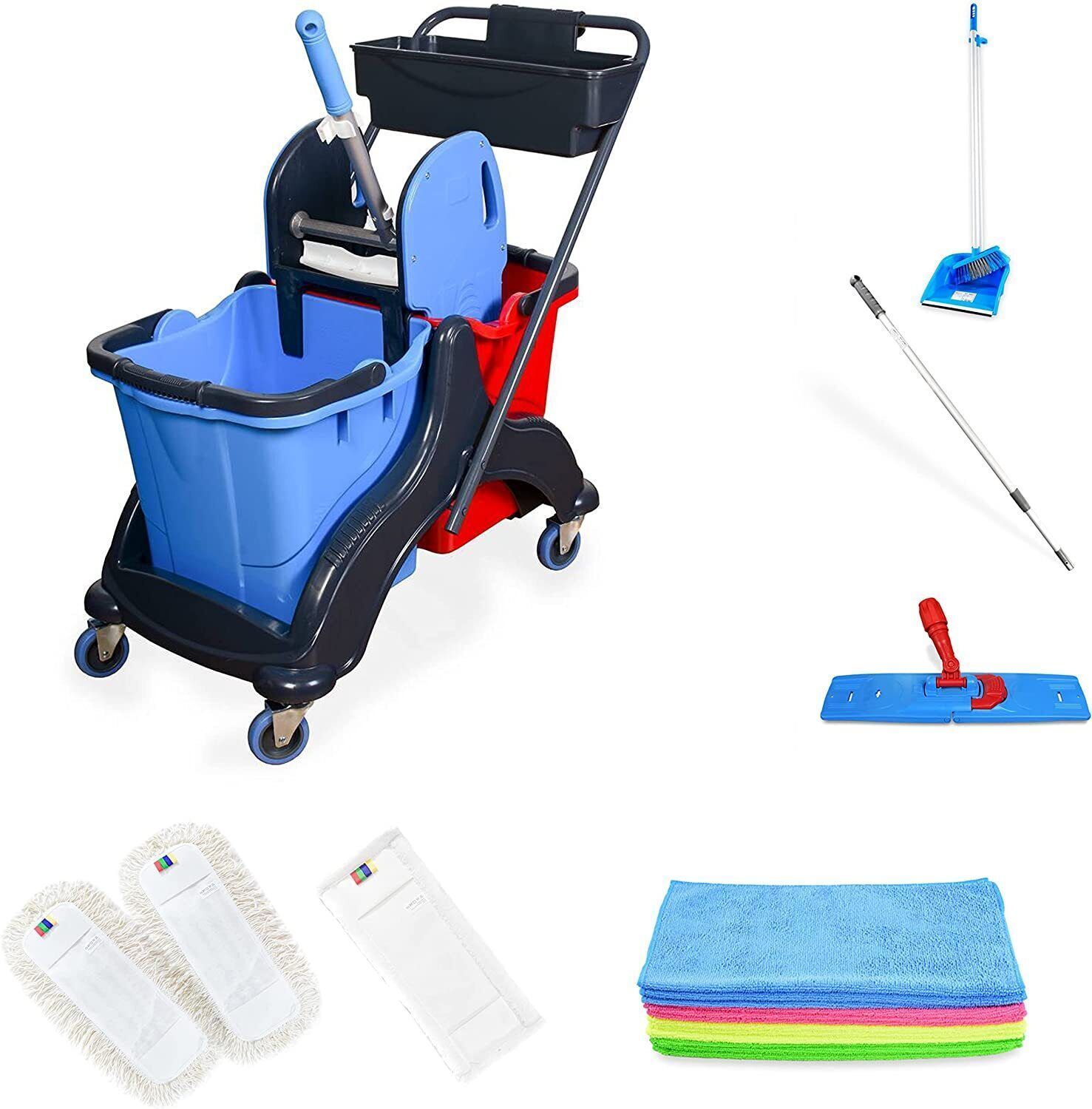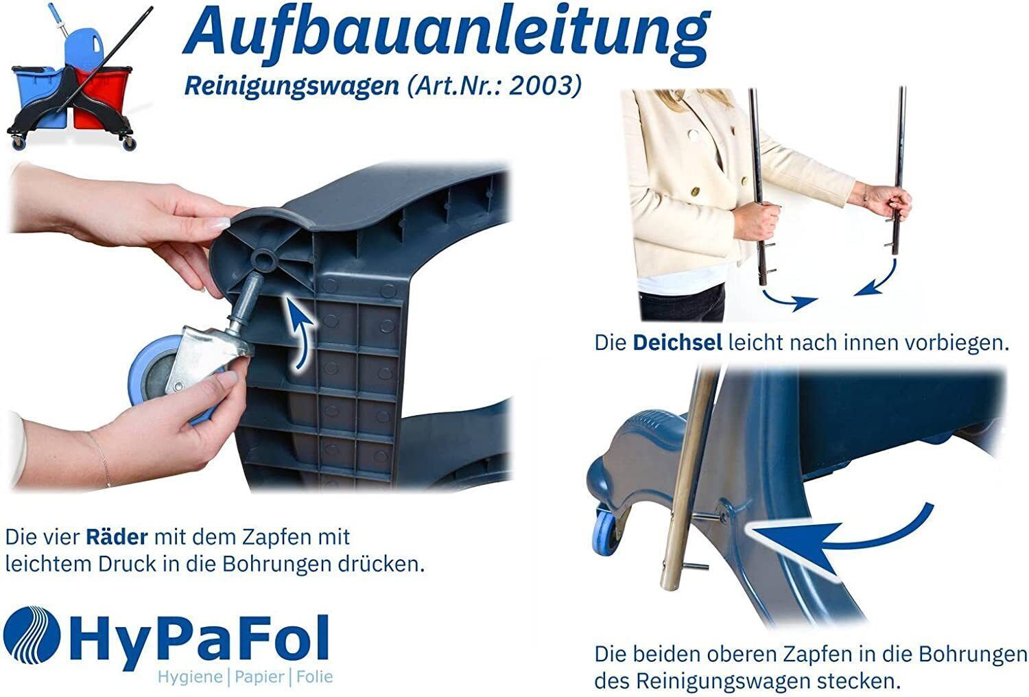 Hypafol Reinigungswagen SET Korb 2x25l Eimer Wischmopp-Presse Tücher |Putzwagen