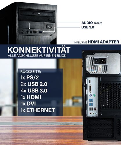 Desktop für Büro & Business | Win 11 Pro | WLAN | USB 3.0 | Tower-PC