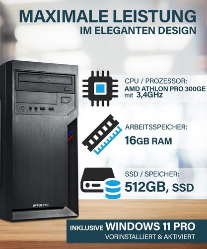 HYPER BYTE Multi - Office PC - AMD Athlon Pro - 16GB RAM - 512GB SSD - Win11 Pro