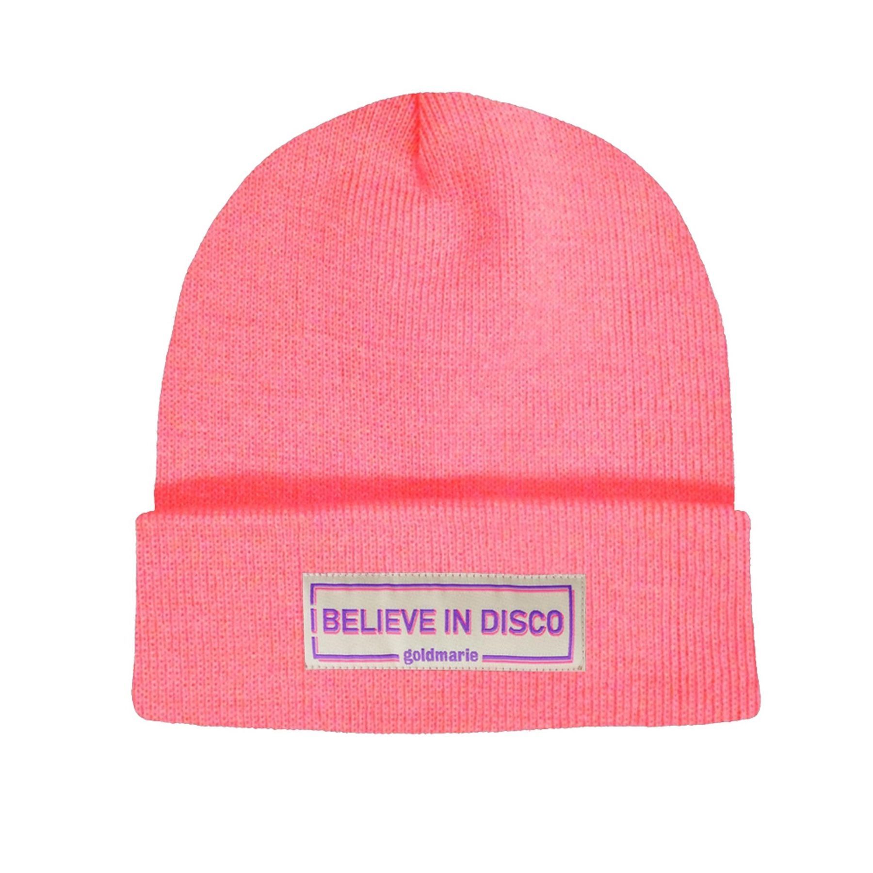 I Believe in Disco Mütze neon pink goldmarie Beanie Label mit Hamburg-Spirit