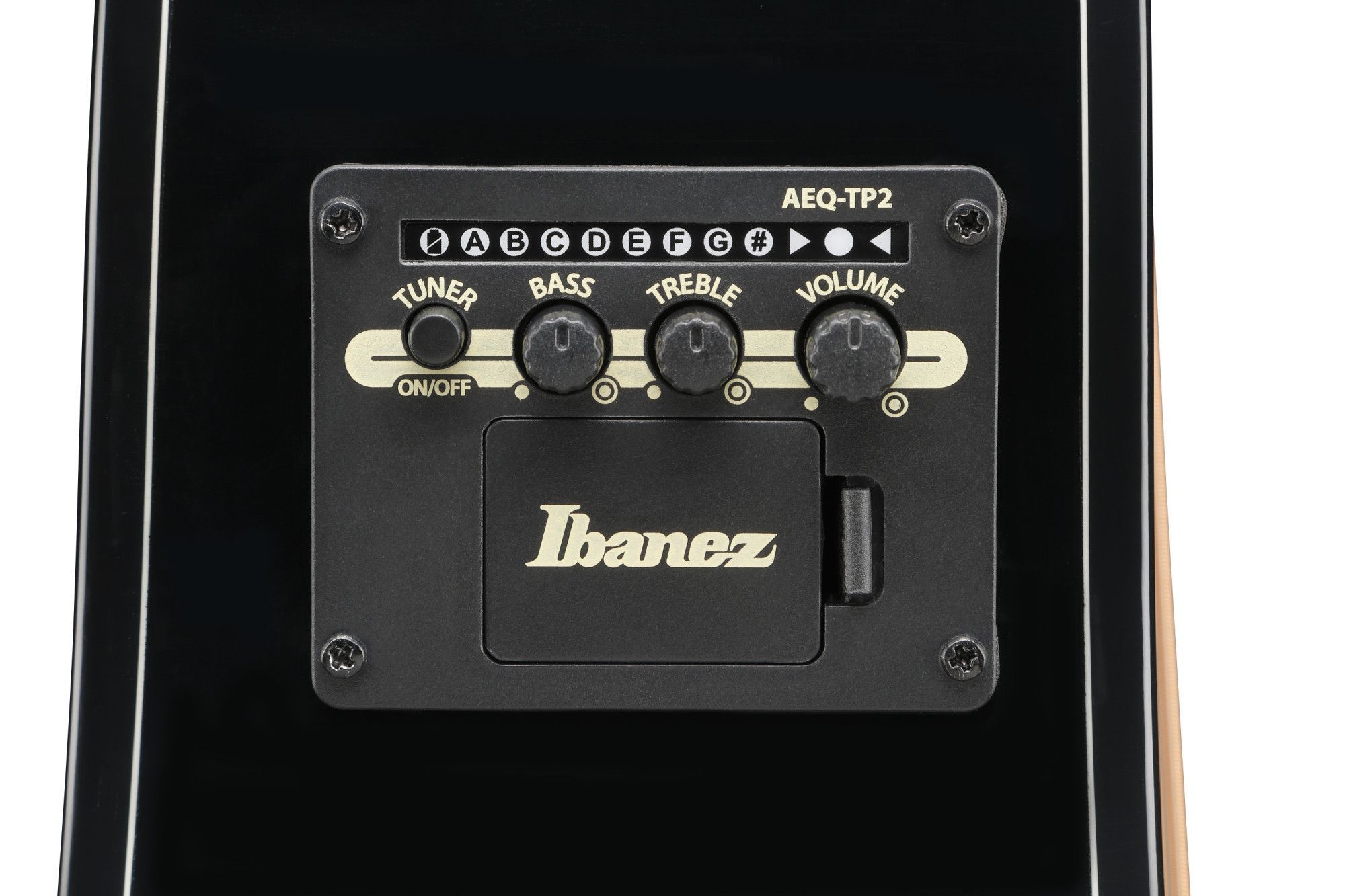 Ibanez AAM100E-BK - Black Bauform: Advanced Auditorium Decke: Sitka-Fichte, massiv Boden und Zargen: Sapele Hals: thermomodifiziertes Mahagoni Halsprofil: Low Oval Grip mit abgerundeter Griffbrettkante Griffbrett: Palisander Mensur: 63,4 cm Sattelbreite: 43 mm Sattel: Kunststoff Inlays: White Dot 20