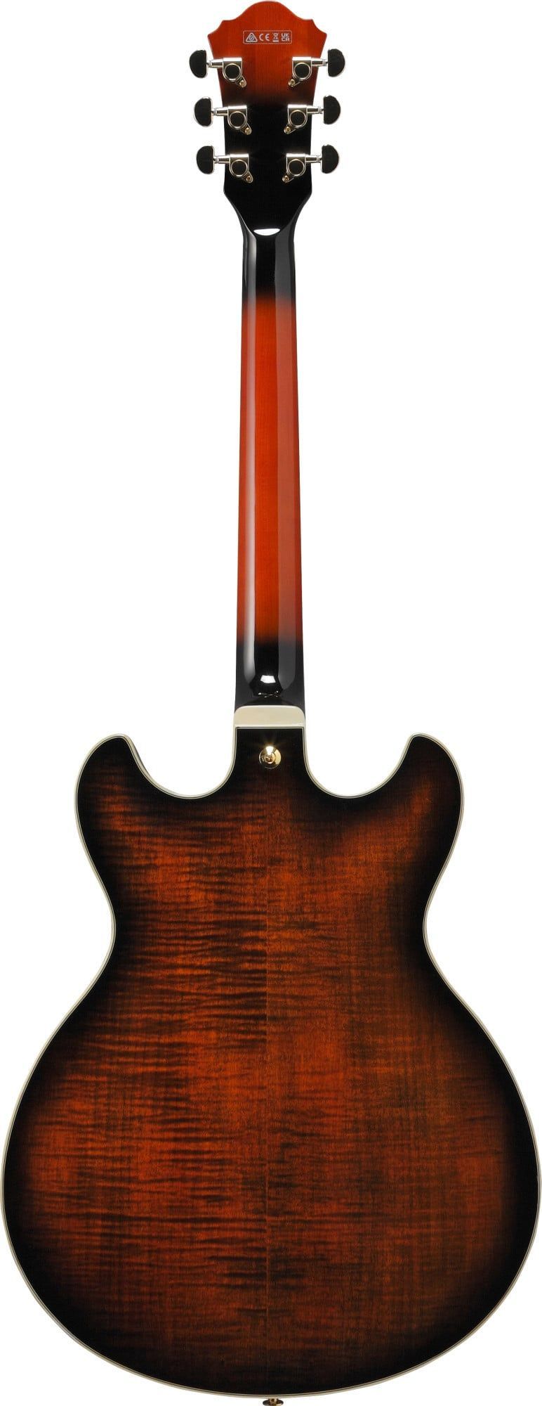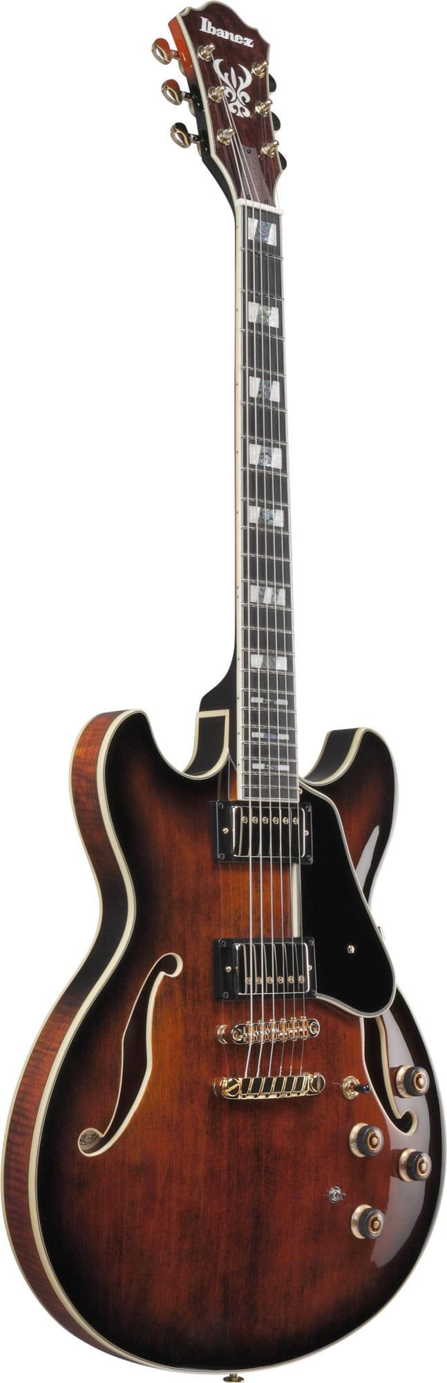 Ibanez AS113B Tabacco Brown - Limited Edition Bauart: Semi-Hollow Decke: Fichte Korpus: geflammter Ahorn Hals: 3-tlg. Ahorn Nyatoh Halsprofil: AS Artstar Griffbrett: Ebenholz Griffbrettbinding: Cream Einlagen: Block Acryl und Abalone 22 Medium Jumbo Bünde Mensur: 628 mm Sattelbreite: 43 mm Sattel: K