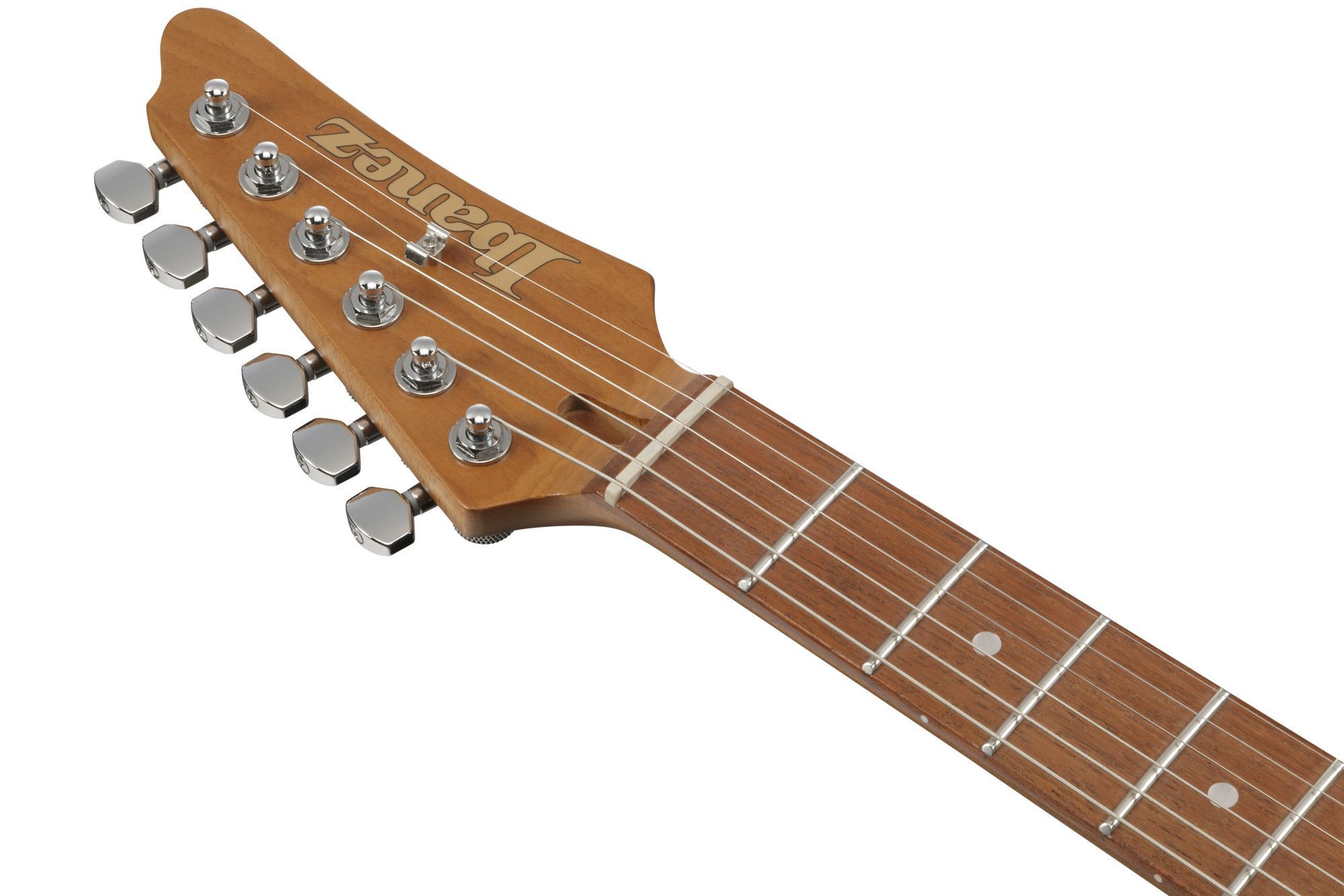 Ibanez AZ22S2 - Black Korpus: Erle Hals: Gerösteter Ahorn Halsprofil: AZ Griffbrett: Jatoba Mensur: 25,5'' (648 mm) Sattelbreite: 42 mm Bünde: 22 Jumbo Edelstahl Tonabnehmer: 2 x Ibanez Classic Custom (S), 1 x Ibanez Classic Custom (H) Regler: Volume, Tone, 5-Wege-Schalter Brücke: T106 Mechaniken: L