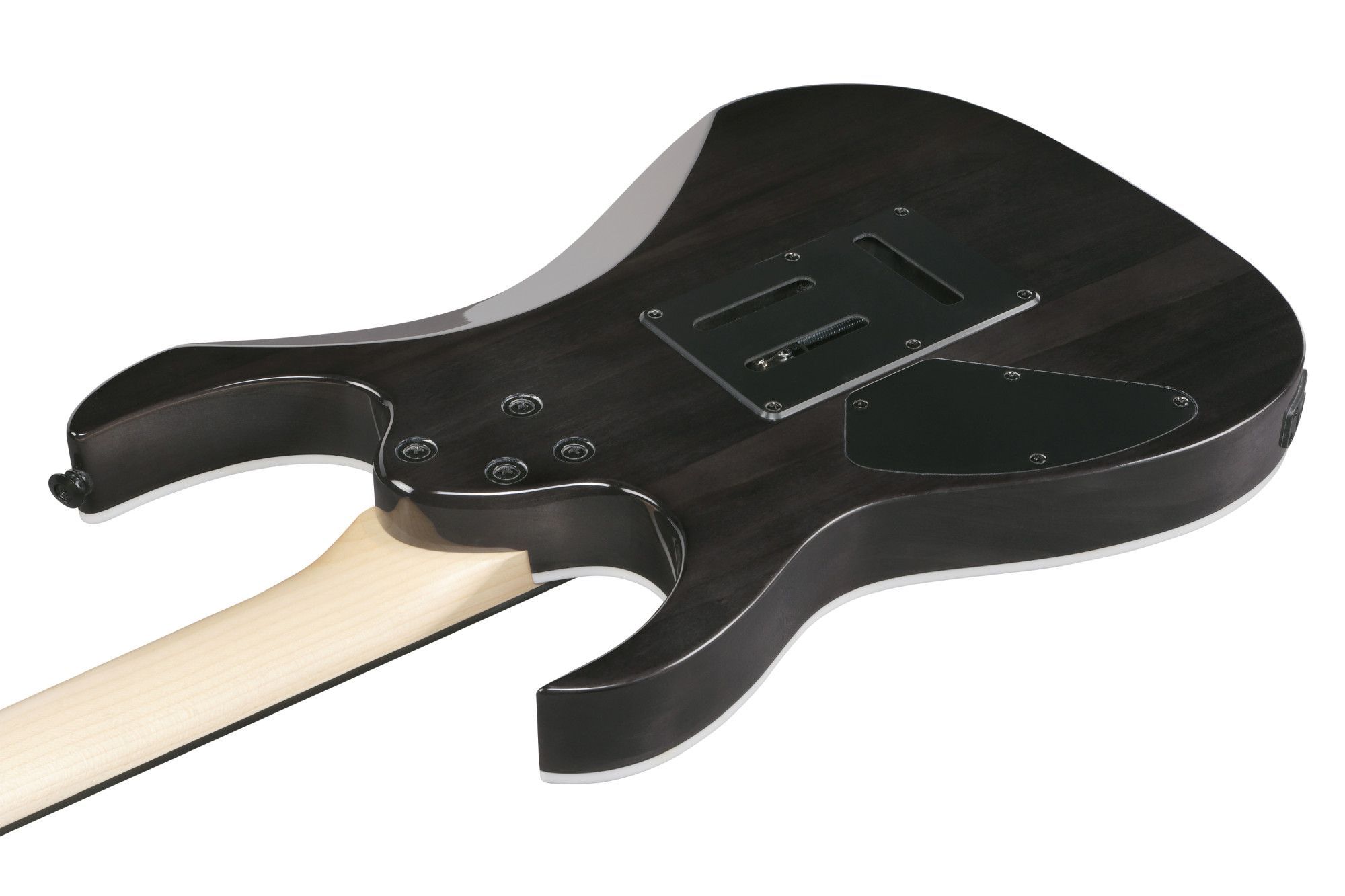 Ibanez GRG120QASP - Black Graduation Korpus: Pappel Korpusdecke: Wölkchenahornoptik (Linde) Hals: Ahorn Halsprofil: GRG Griffbrett: Eingefasstes Purpleheart Mensur: 25,5'' (648 mm) Sattelbreite: 43 mm Bünde: 24 Medium Bünde Tonabnehmer: 2 x Infinity R (H) Regler: Volume, Tone, 5-Wege Schalter Brücke