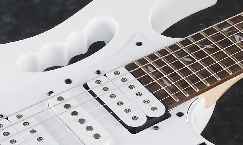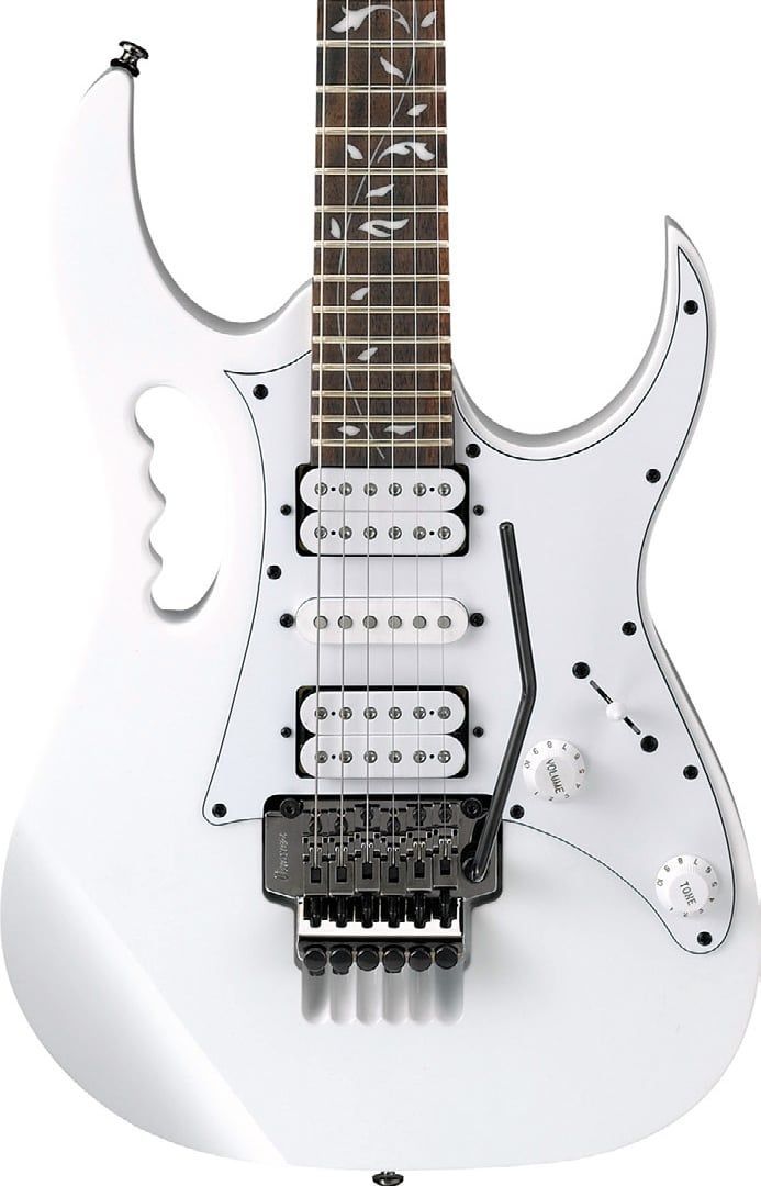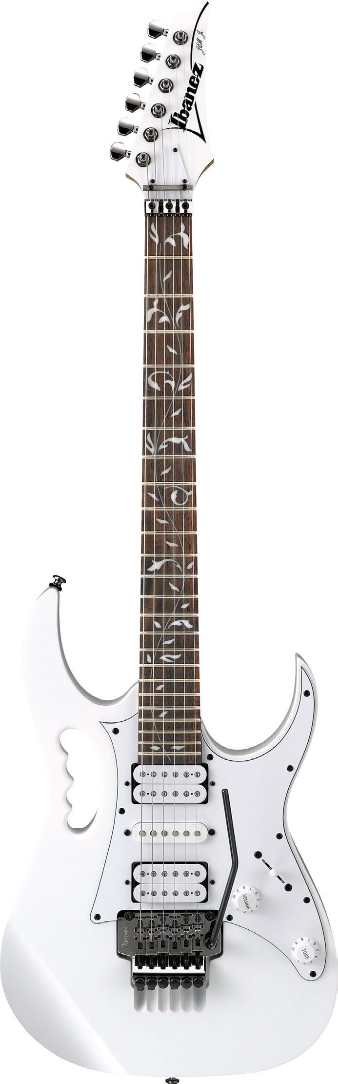Ibanez JEMJR-WH - Steve Vai Signature Modell Siganture Modell Korpus: Meranti Hals: Ahorn Halsprofil: Wizard III Griffbrett: Palisander Griffbrettradius: 400 mm ( 15,75') Mensur: 64,8 cm ( 25,5') Sattelbreite: 43 mm Sattel: Locking 24 Jumbo Bünde Inlays: Tree of Life Tonabnehmer Hals: Quantum Cerami