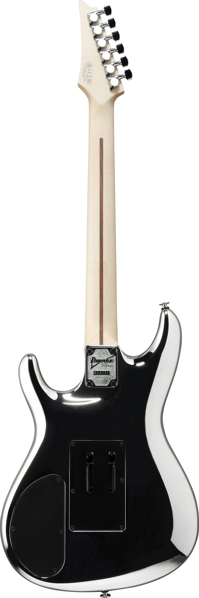 Ibanez JS3CR Joe Satriani Signature - Matte Chrome Signature Modell Korpus: Linde Hals: Ahorn, 1-teilig Halsprofil: JS Griffbrett: Palisander Griffbrettradius: 9,8'' Mensur: 64,8 cm (25,5'') Sattelbreite: 42,8 mm Sattel: Locking Inlays: Mother of Pearl Dot 22 Medium Bünde Tonabnehmer: 1 x DiMarzio S