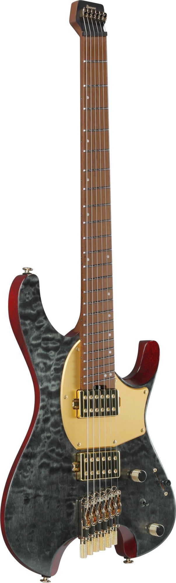 Ibanez MGFM10-OBL Manuel Gardner Fernandes Signature - Obsidian Black Low Gloss Signature Modell Decke: Wölkchenahorn Korpus: Nyatoh Hals:Ahorn Bubinga, geröstet, 3-teilig Halsprofil: Parallel Wizard Griffbrett: Vogelaugenahorn, geröstet Griffbrettradius: 20' Mensur: 64,8 cm (25,5') Sattelbreite: 42
