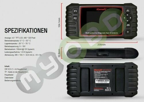 iCarsoft iCarsoft CR Plus Fehler lesen löschen Motor ABS Airbag EPB Servicerückstellung..