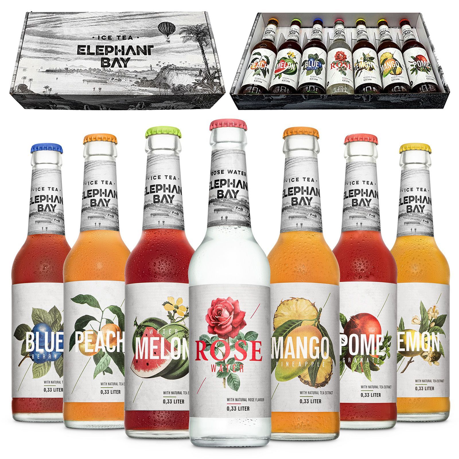 ICE TEA Eistee Elephant Bay - 7 Sorten Probier Set - Peach + Melon + Blueberry