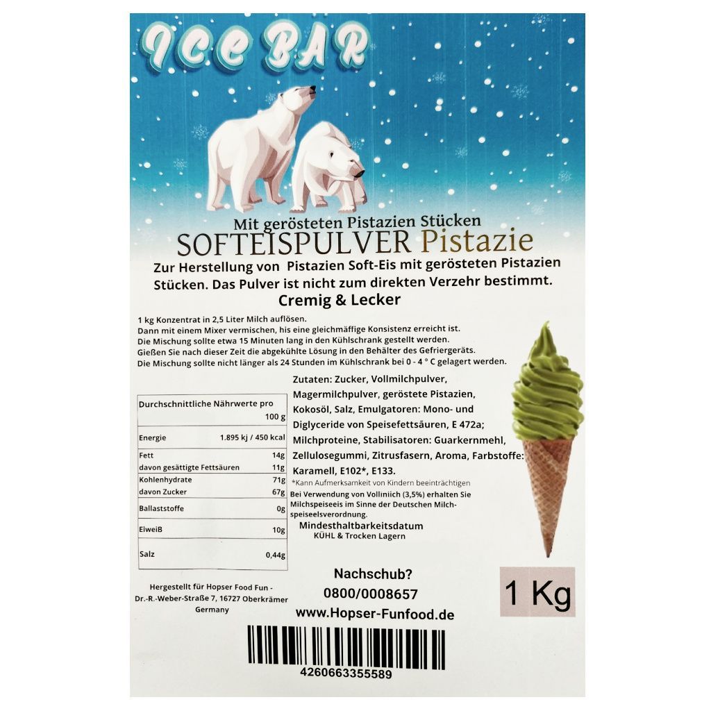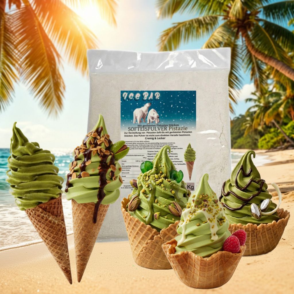 IceBär Softeis Pulver Pistazie gesalzen 1 kg für Softeismaschine 1:2,5