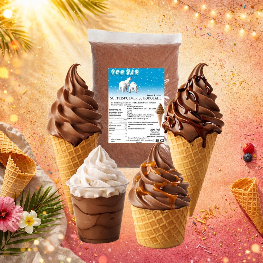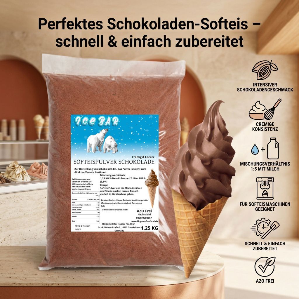 IceBär Softeis Pulver Schokolade 1,25 kg für Softeismaschine 1:5 Mischung