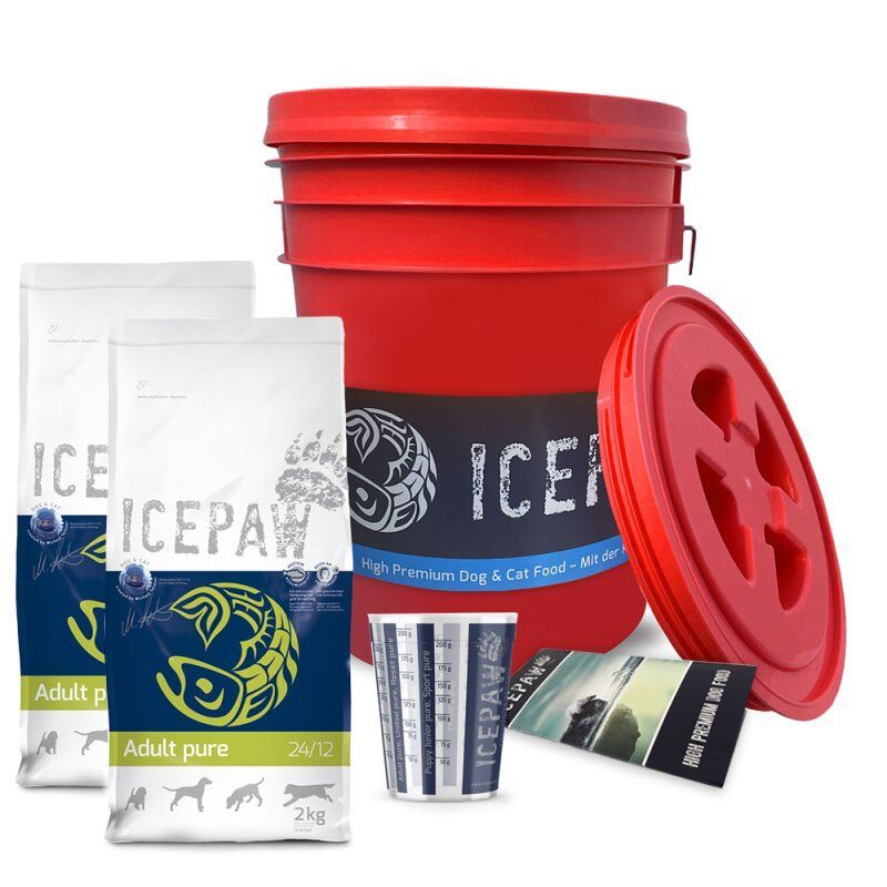 ICEPAW Futtereimer & 4kg Adult pure Hundefutter Set