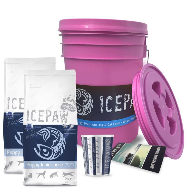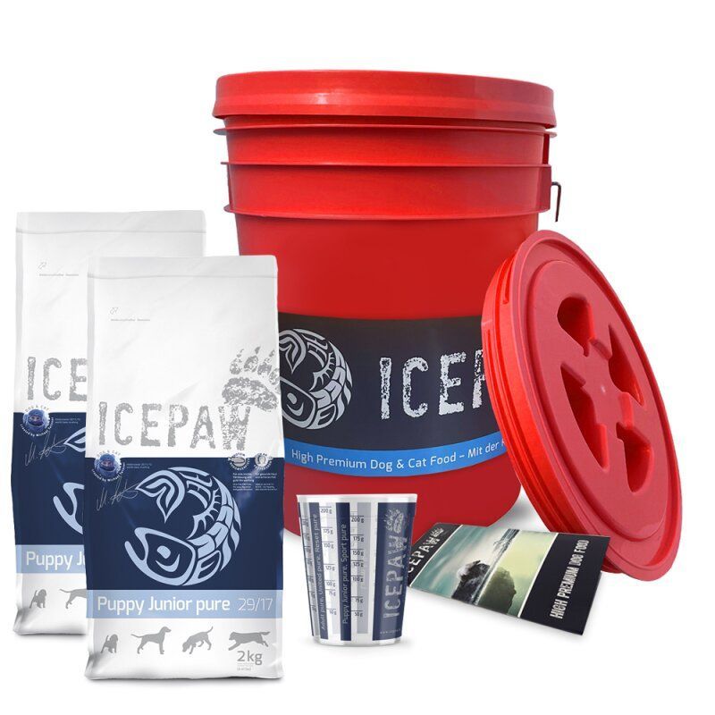ICEPAW Futtereimer & 4kg Puppy Junior Hundefutter