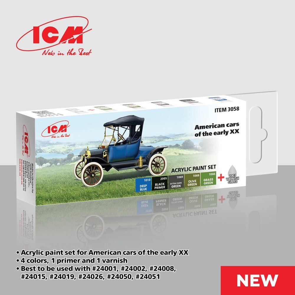 ICM 3058 Acrylic Paint Set for American cars of the early ?? 6 x12 ml - NEU