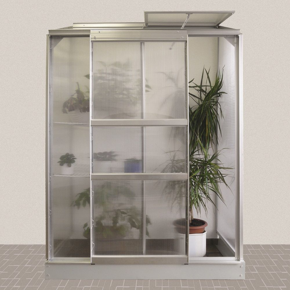 Ida 900 Alu-Anlehngewächshaus HKP4mm Balkon Treibhaus 0,9 m² Fundament 1 Fenster