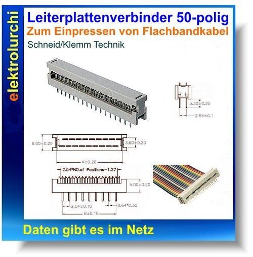 Sie bieten hier auf folgenden Artikel 2 Stück IDC Leiterplattenverbinder FFC FPC, 50-polig, RM 2,54 Flachbandkabel Polzahl: 50-polig Raster 2,54mm Kontakte: verzinnt Montage: IDC-Einpresstechnik, Schneid-Klemm-Technik Hersteller: Molex