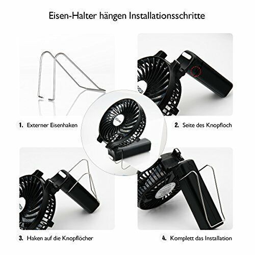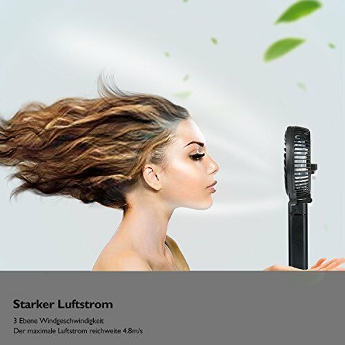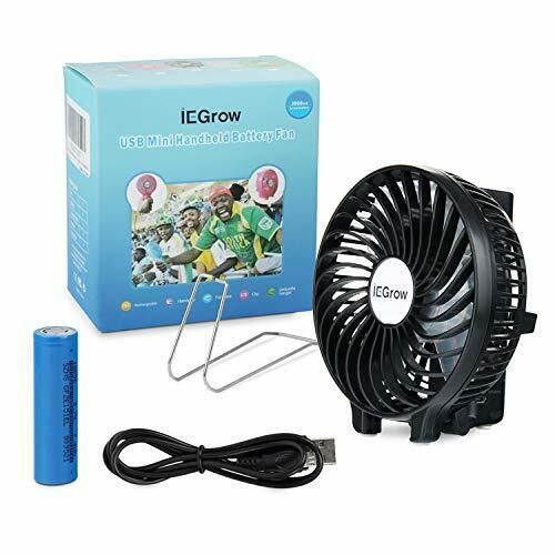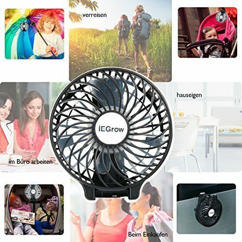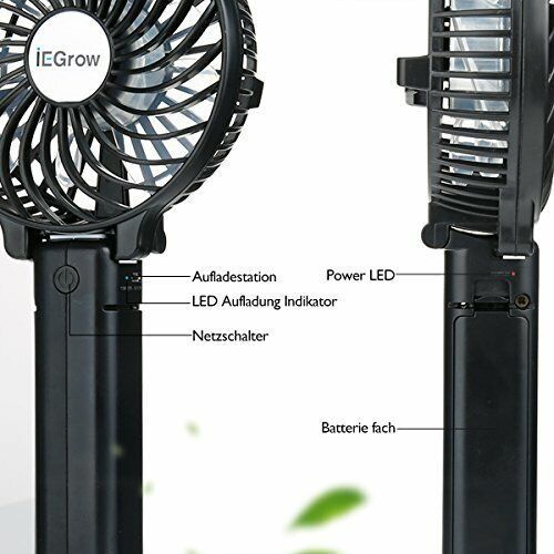 iEGrow USB Ventilator Mini Handventilator Batteriebetrieben Aufladbar Schwarz
