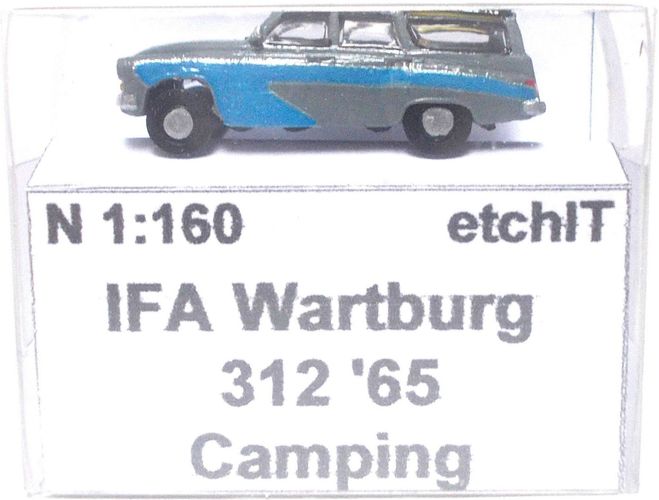 IFA Wartburg 312 ´65, Camping, Faltdach offen, grau, Kleinserie, Ep3, etchIT, Spur N