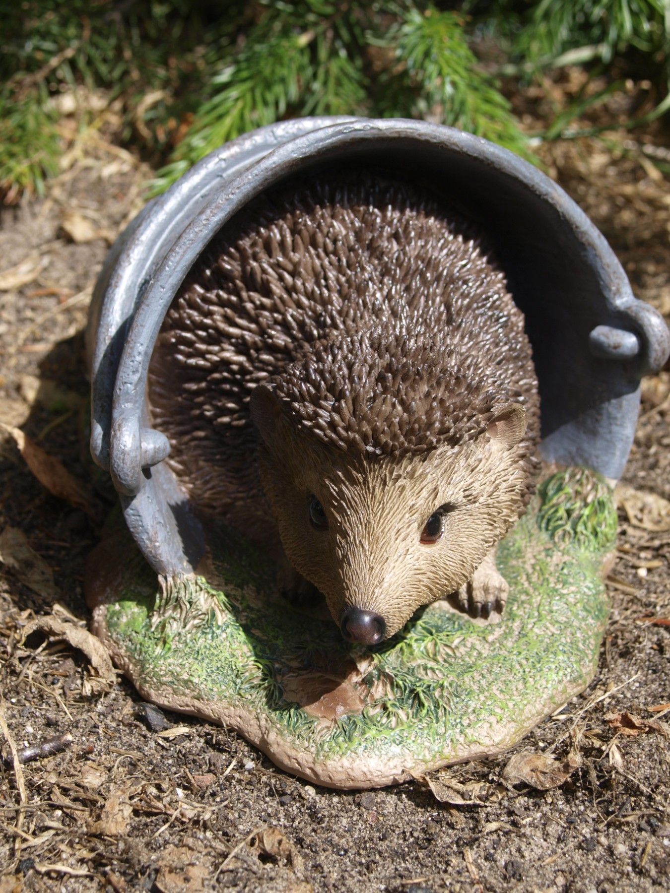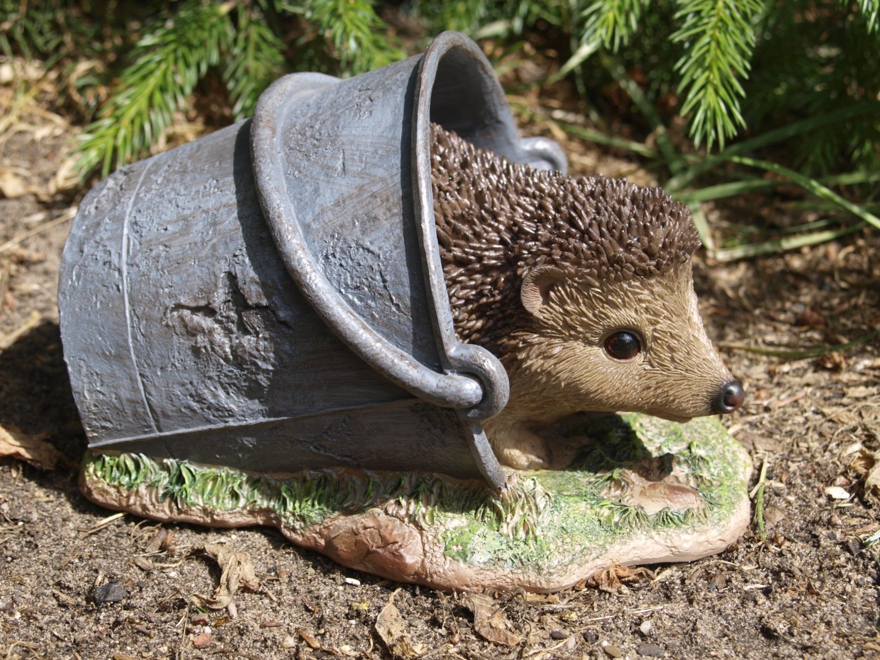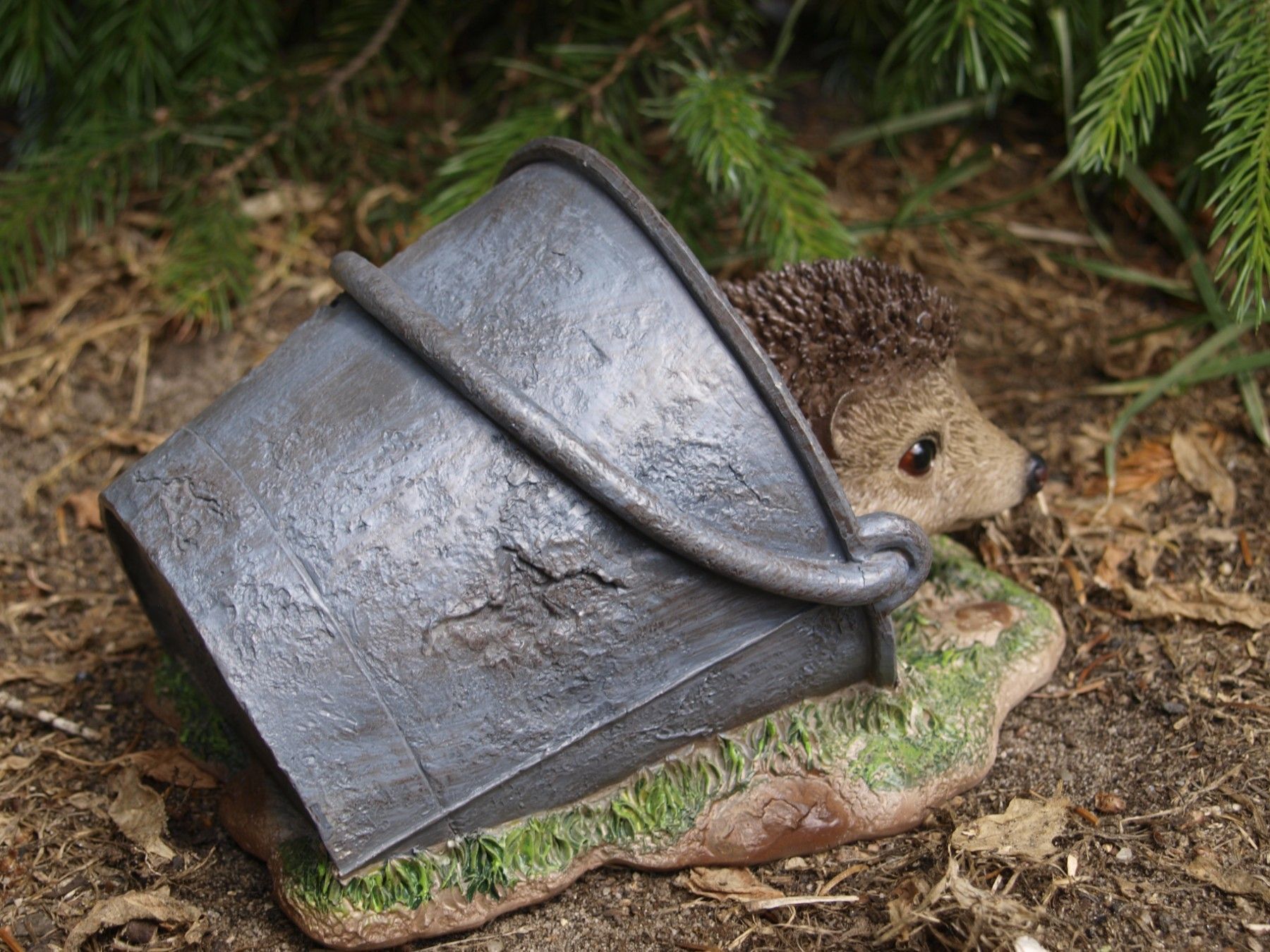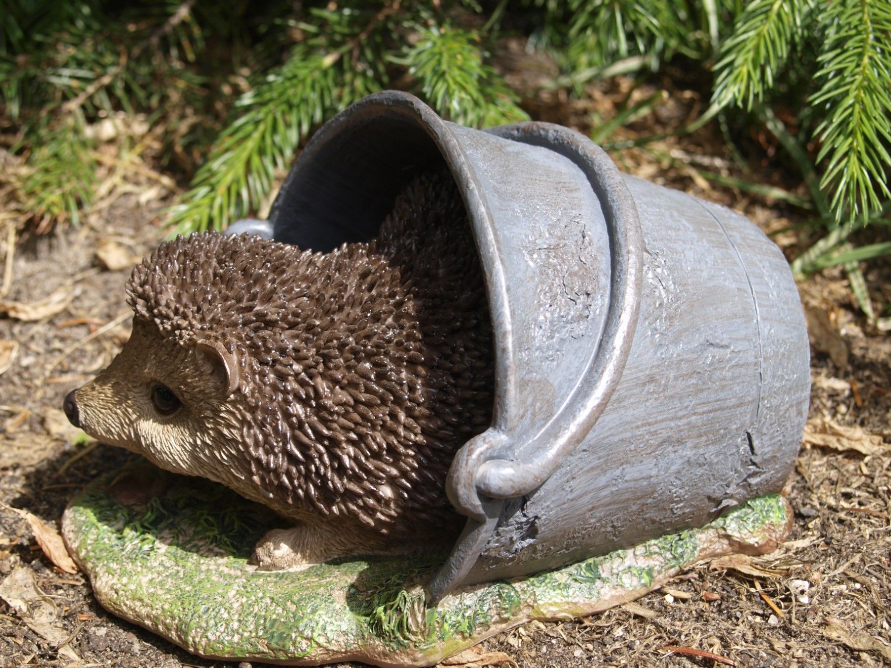 Igel Deko Figur im Eimer lebensecht wetterfest Garten Figur NEU HOTANT