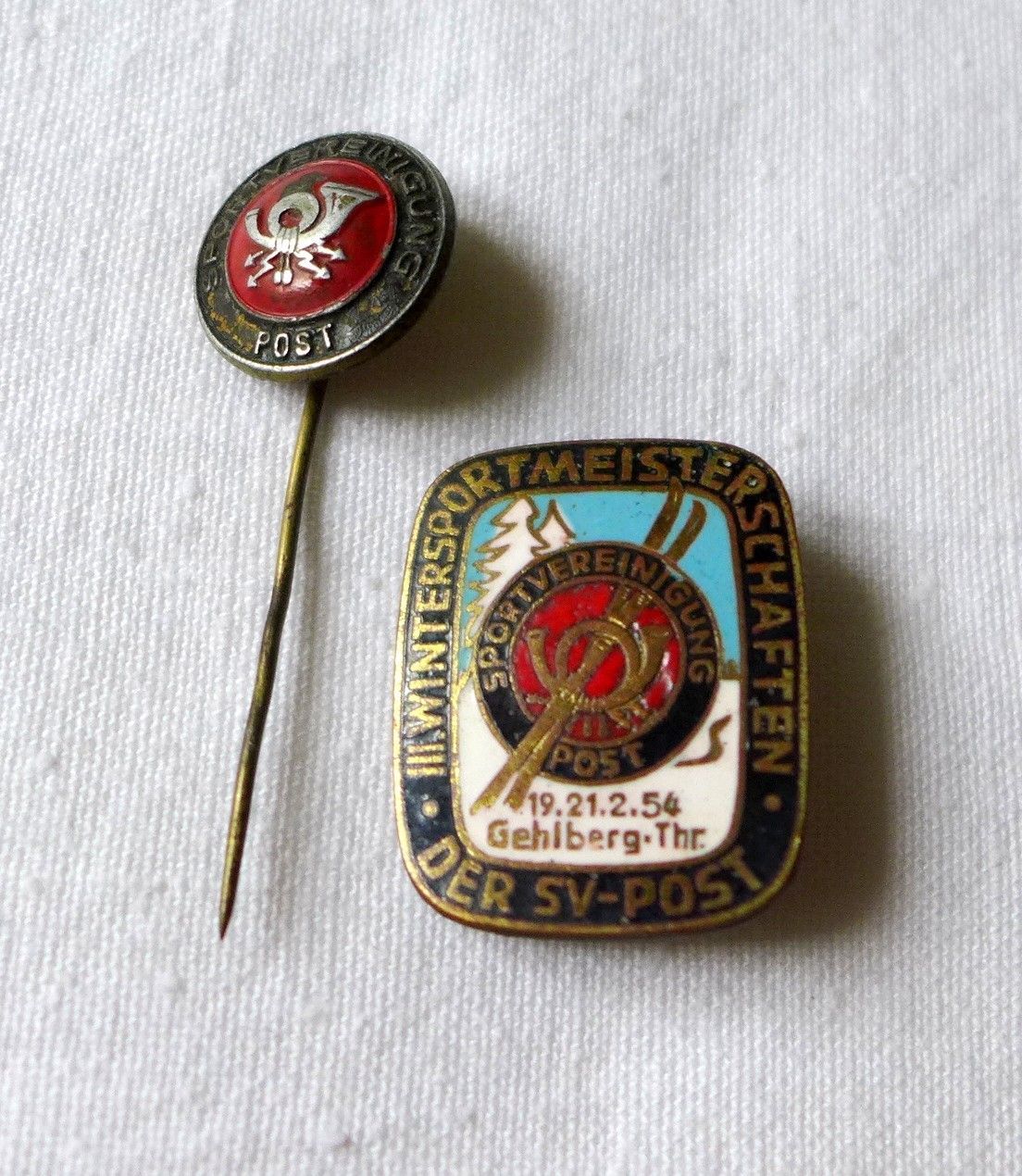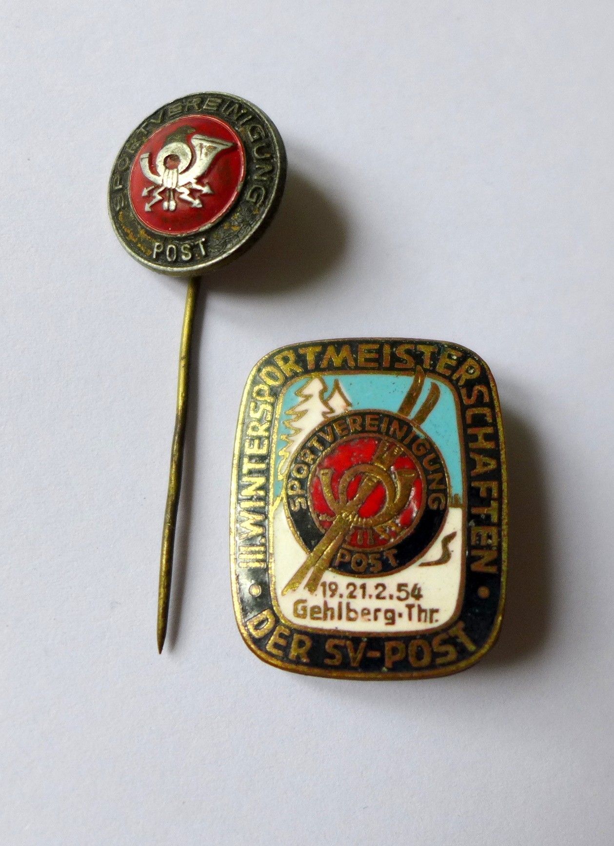 III. Wintersportmeisterschaften SV Post 1954 Gehlberg Thüringen emailliert DDR