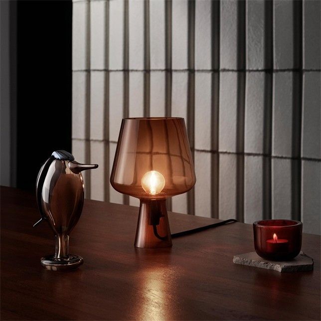 Iittala Iittala - Tischleuchte Leimu Desig Lampe aus Glas in Grau & Kupfer