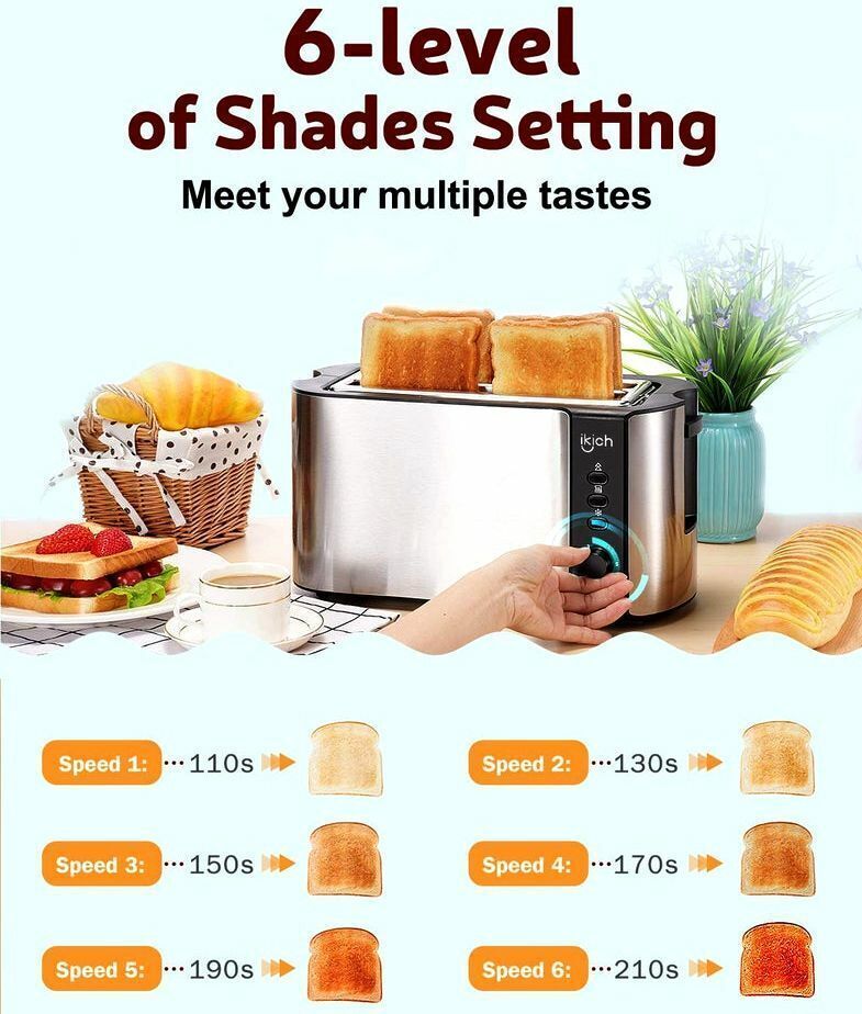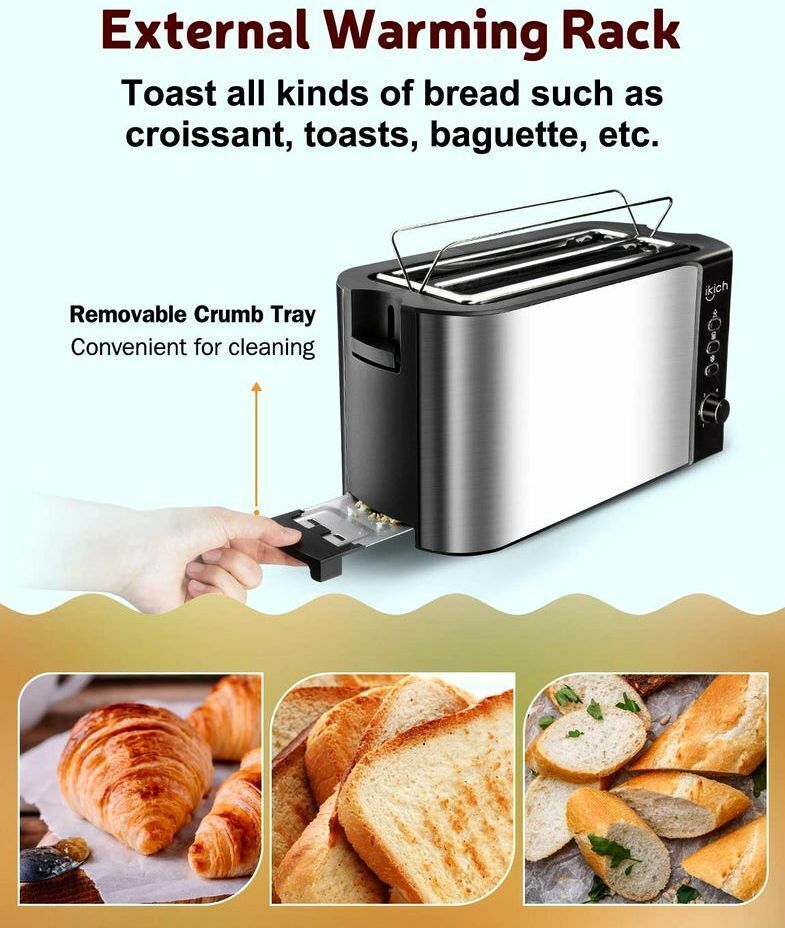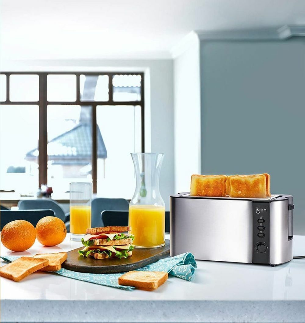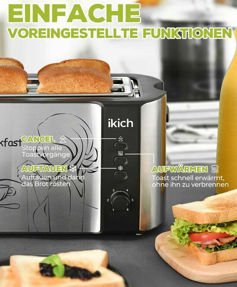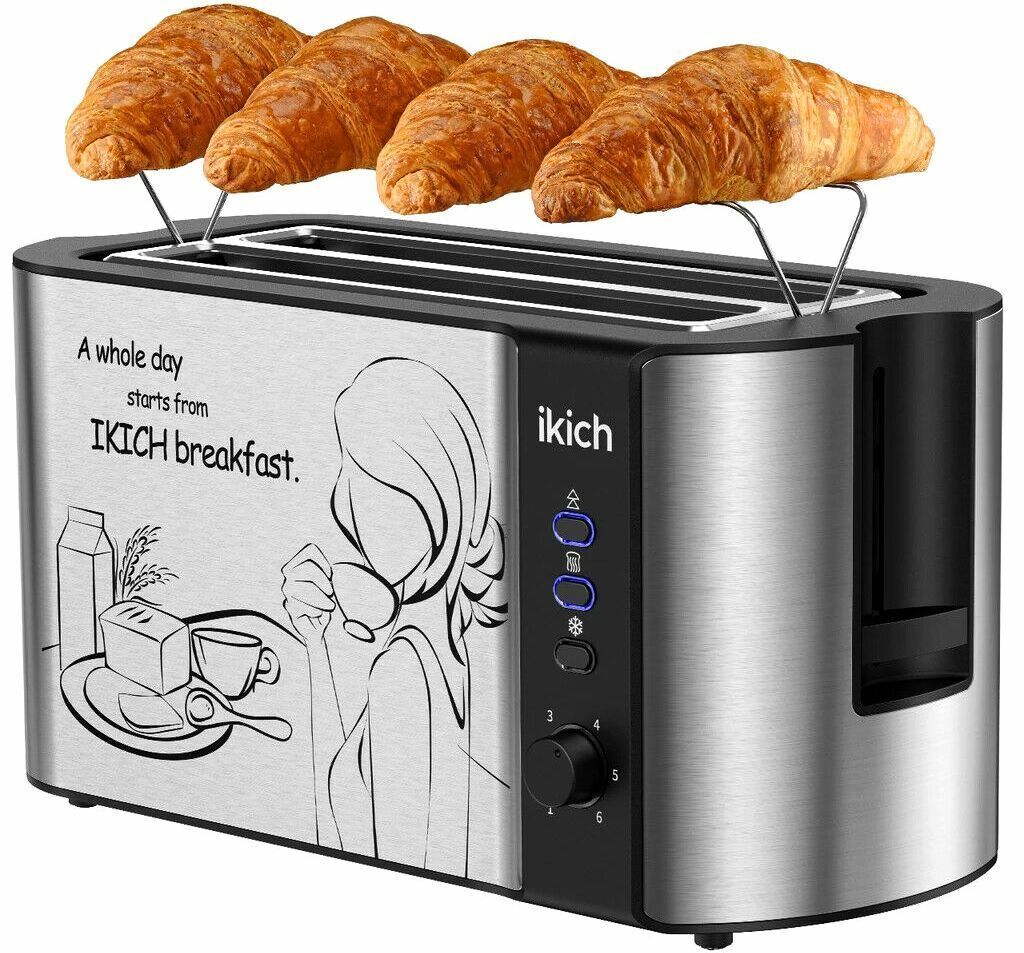Ikich CP144A Langschlitz Toaster 4 Scheiben 6 Stufen Brotaufsatz 1500W Edelstahl