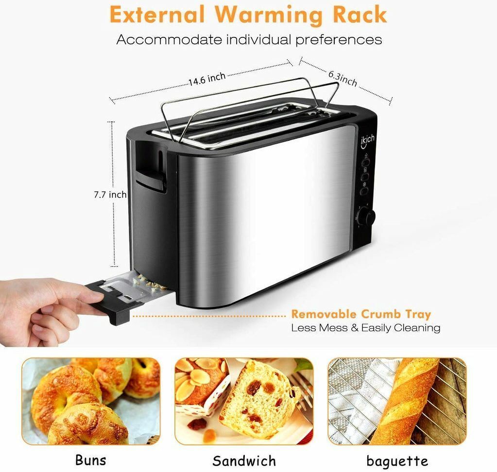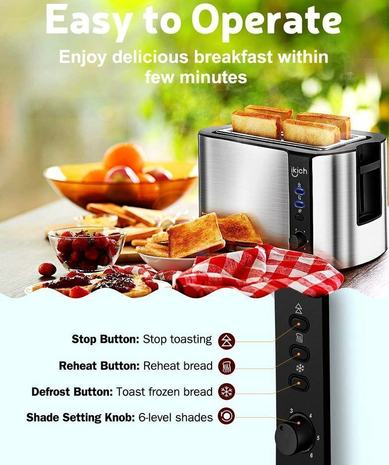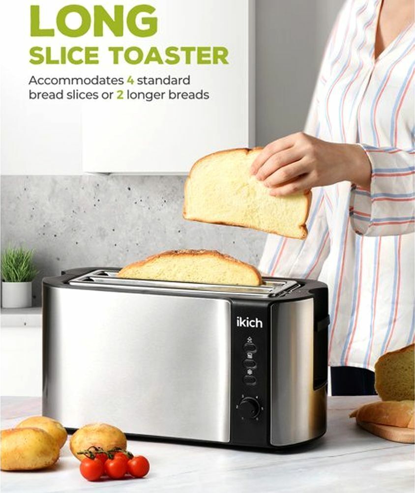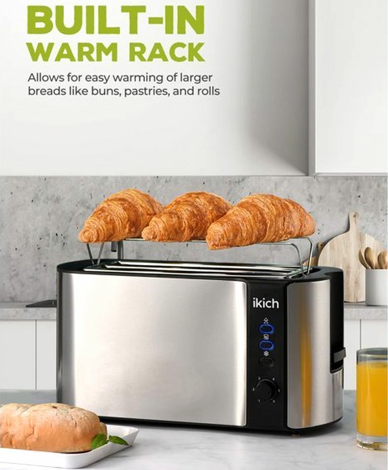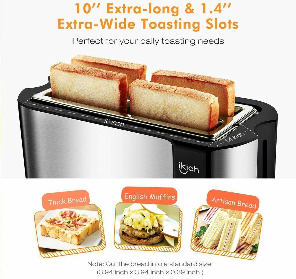 Ikich CP144A Langschlitz Toaster 4 Scheiben 6 Stufen Brotaufsatz 1500W Edelstahl