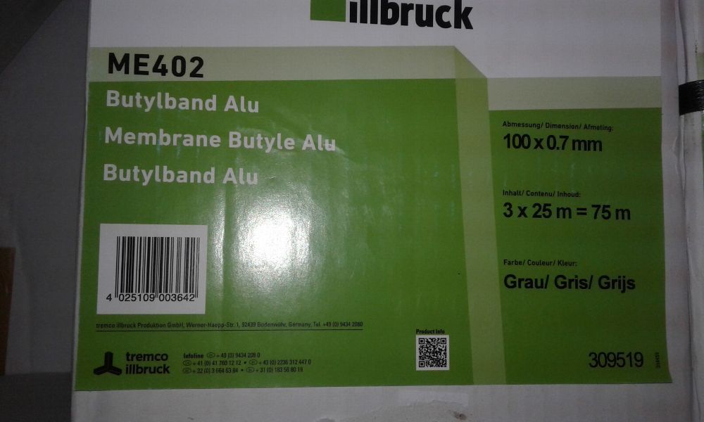 Illbruck ME40, Butylband Alu Kasch. 100mm x 0,7 mm , Innen u Aussen Abdichtung 25 Mt.