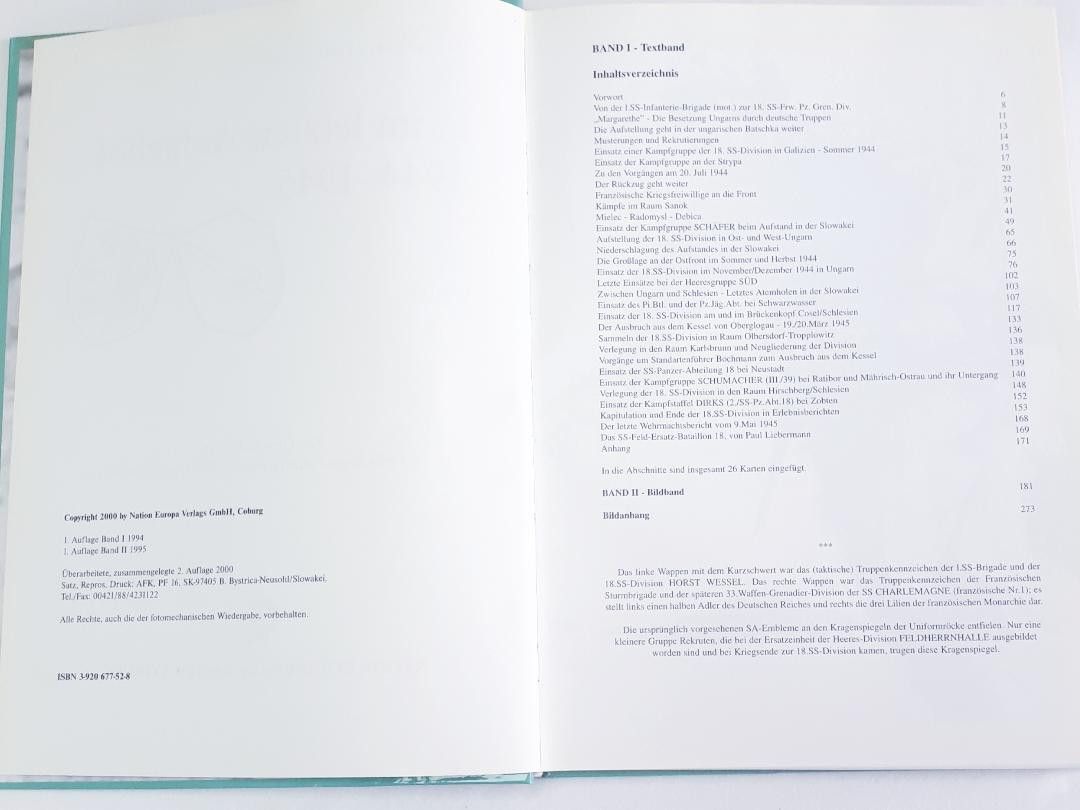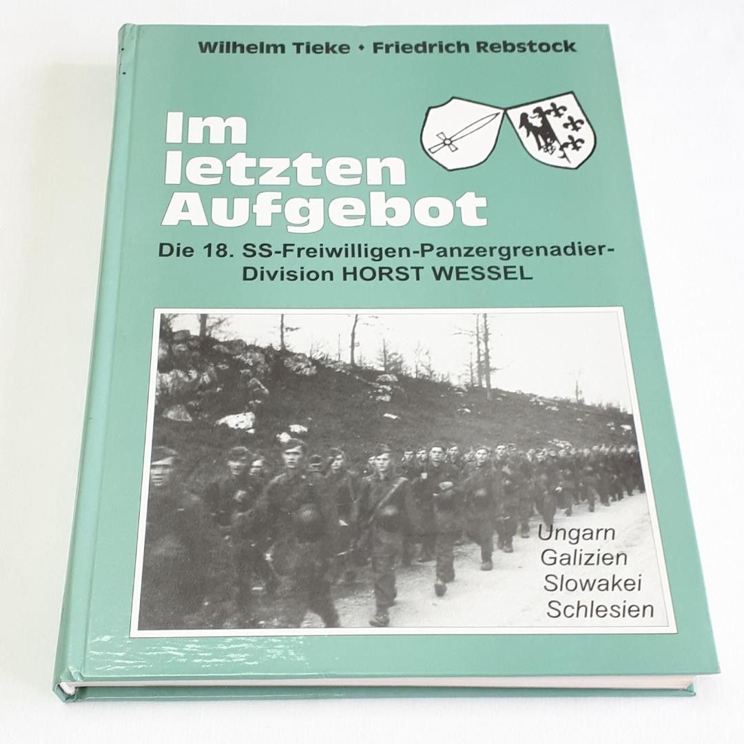 Im letzten Aufgebot - Die 18.SS-Freiwilligen-Panzergrenadier-Division Horst Wessel R. * Band I und II * Autoren: Wilhelm Tieke/Friedrich Rebstock * Nation Europa Verlag, Coburg * 2.Auflage, 2000 * ISBN: 3920677528 * 322 Seiten Zustand: gut - gebraucht mit einigen Gebrauchsspuren (Bräunungsspuren, kleinere Schmutzpunkte kommen vor)