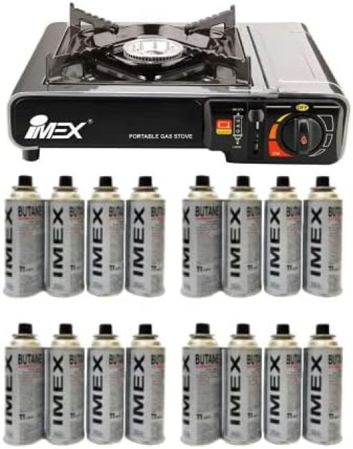 Imex tragbarer Gaskocher mit Koffer - mit 16 Gaskartuschen