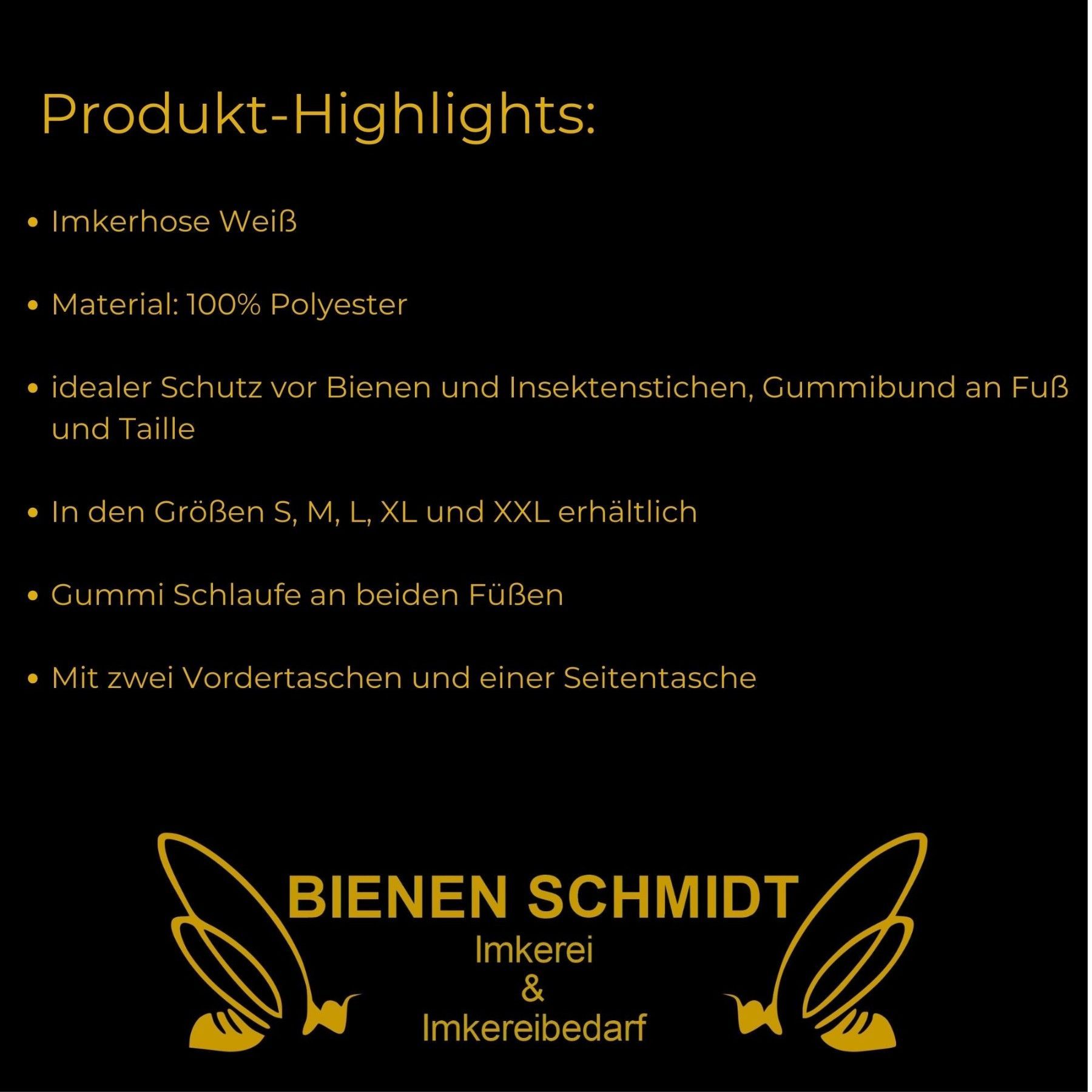 Imkerhose BASIC weiß S-XXL Schutzhose mit Gummizug an Bein und Hüfte Arbeitshose