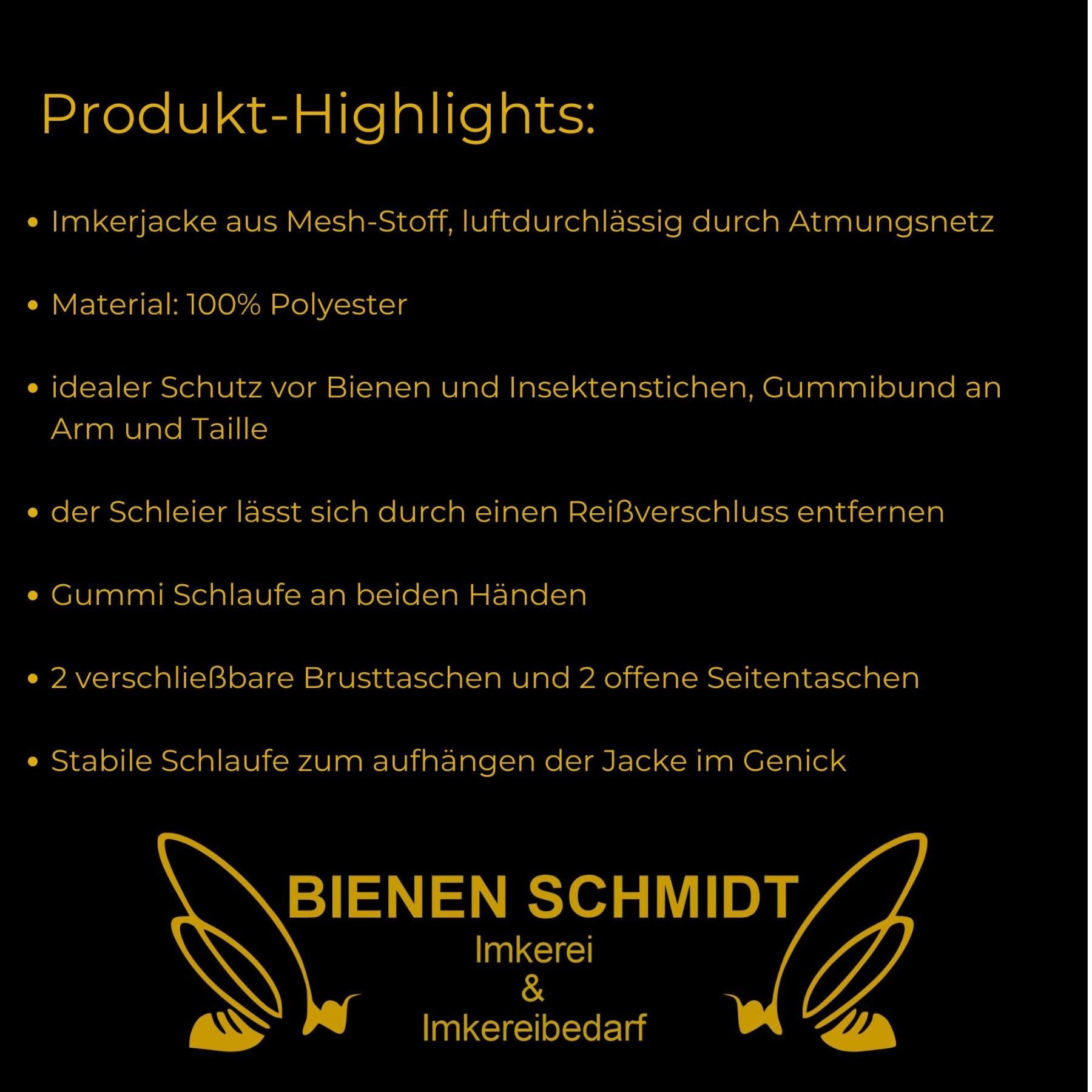 Imkerjacke Full-Air mit integrierten Schleier Weiß Größe S-XXL mit Reißverschluss