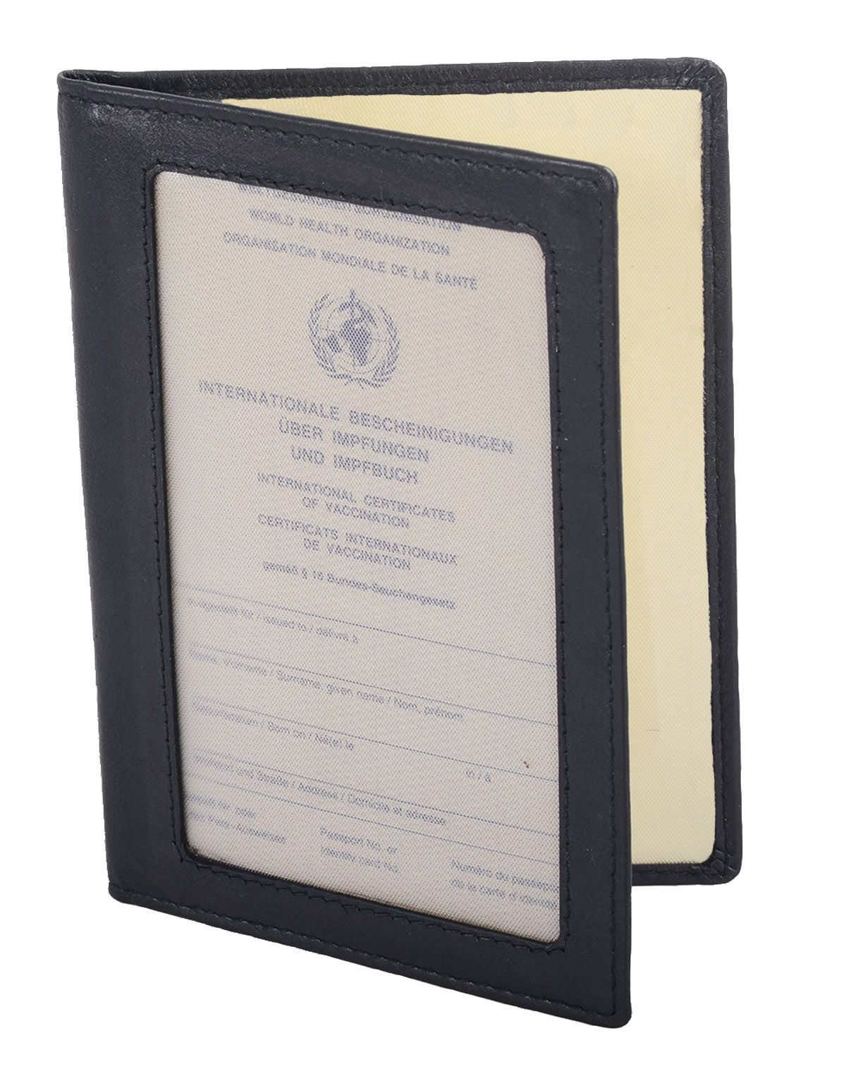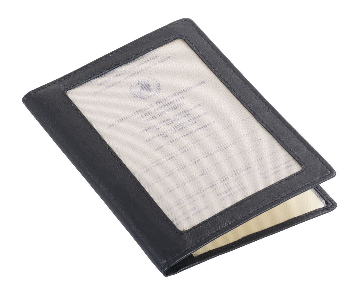 Impfpasshülle Reisepasshülle, schwarz, Klarsichtfach, echt Leder