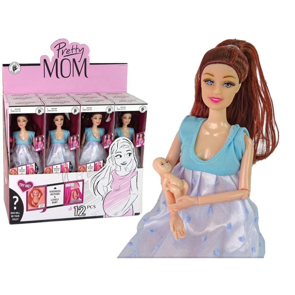 IMPORT Leantoys Schwangere Babypuppe Blaues Kleid