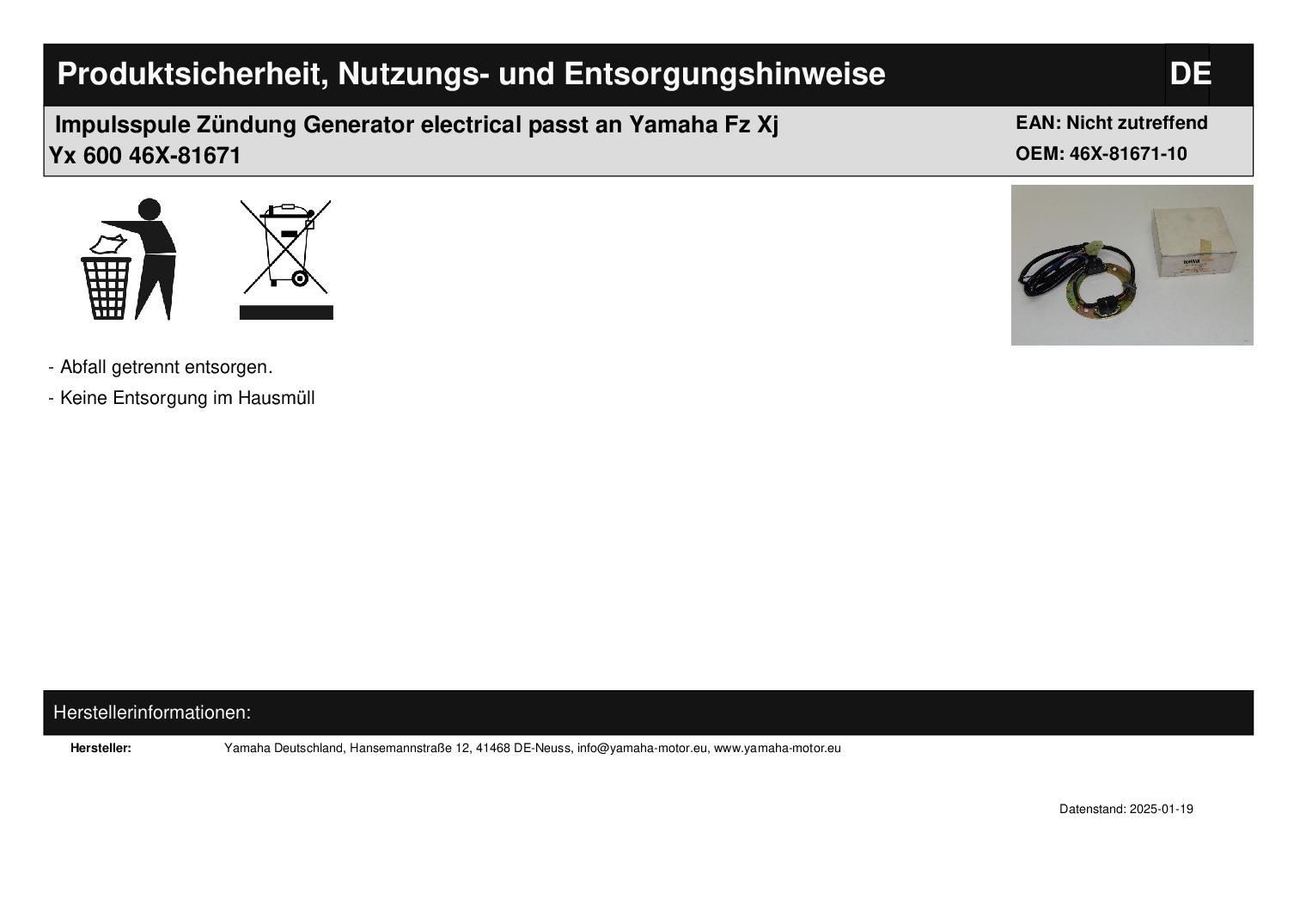 Impulsspule Zündung Generator electrical passt an Yamaha Fz Xj Yx 600 46X-81671 In dieser Auktion gibt es folgenden Artikel zu kaufen: Impulsspule (siehe Foto) Modell: passend für Yamaha FZ 600 Bj.: 1984 FZ 600 Bj.: 1986 XJ 600 Bj.: 1984 - 1986 YX 600 Bj.: 1986 Lieferumfang: siehe Foto Artikelzustan